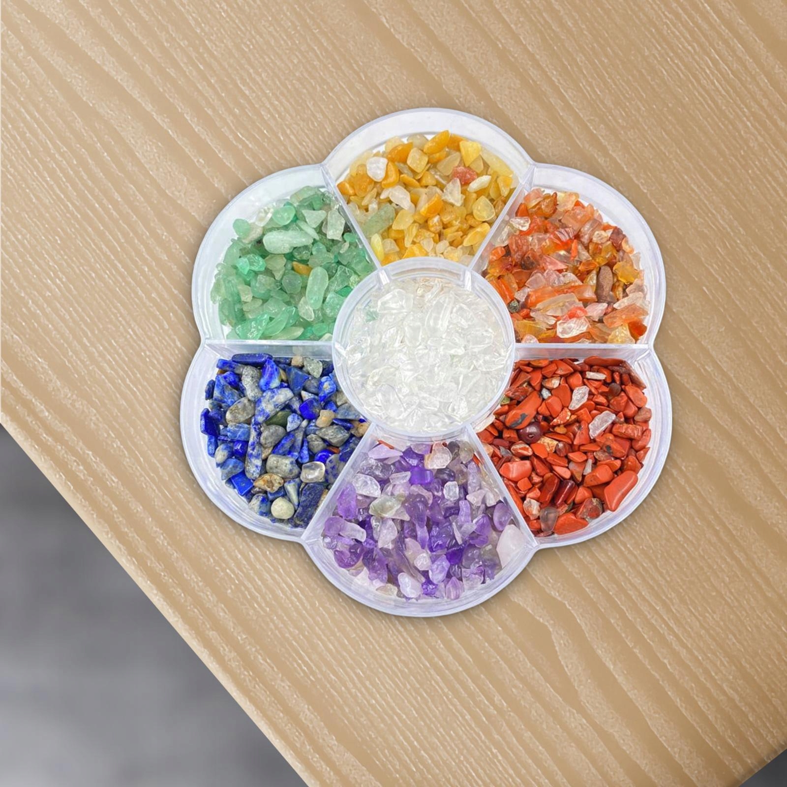 Особенность: все бусины с драгоценными камнями упакованы в органайзер для украшений с 7 сетками, что упрощает переноску и использование.