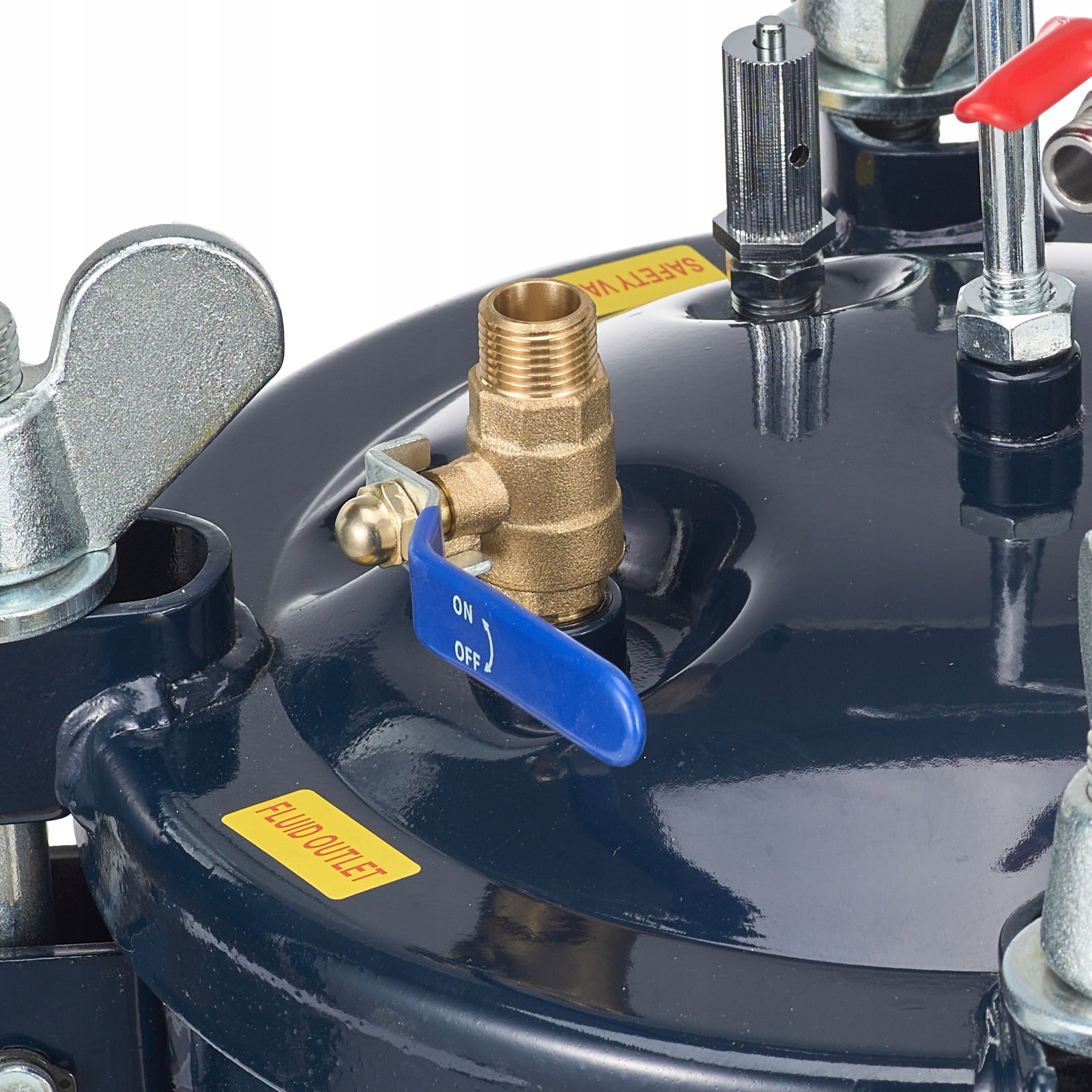 Емкость напорного бака составляет 2,5 галлона/10 л, диаметр входного и выходного отверстия 1/4 дюйма/0,64 см и диаметр выхода жидкости 3/8 дюйма/0,95 см. Вмещает больше красок или небольшие модели из смолы, что повышает эффективность покраски.