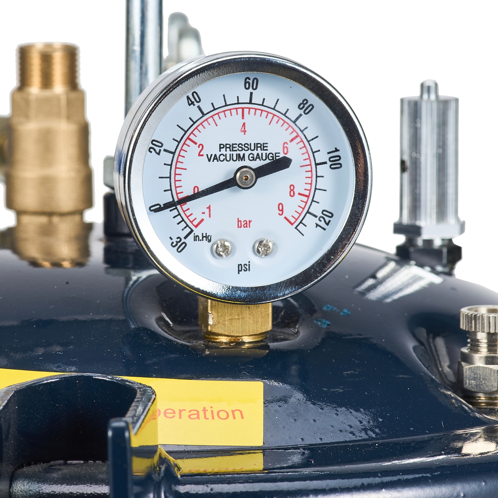 Ручка регулировки давления позволяет устанавливать давление от 0 до 70 фунтов на квадратный дюйм. Предохранительный клапан автоматически сбрасывает давление, когда давление воздуха превышает 0,5 МПа.