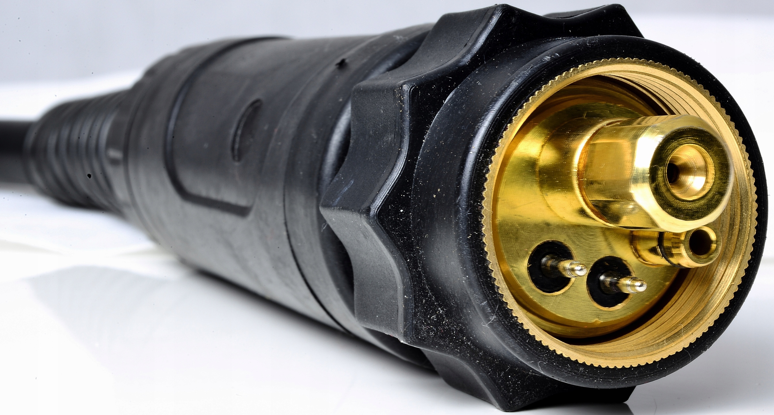 Универсальный евро-разъем позволяет взаимозаменяемо подключать различные сварочные горелки.