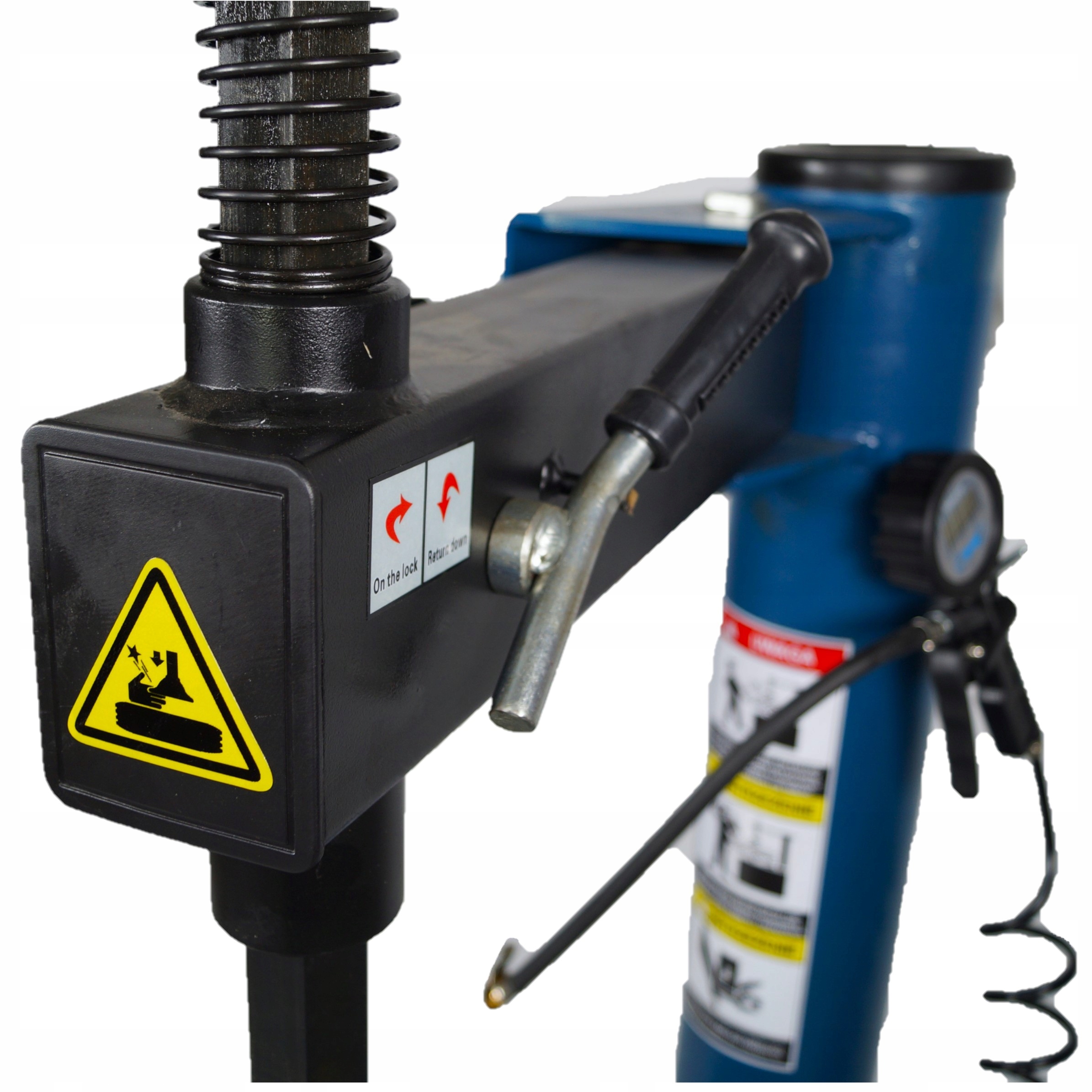 Мачта перемещается вручную в сторону, а Головка блокируется вручную с помощью эксцентрикового рычага. Конструкция мачты машины жесткая, что достигается применением соответствующих профилей. Четырехзахватный держатель обеспечивает прочное самоцентрирующееся крепление обода.