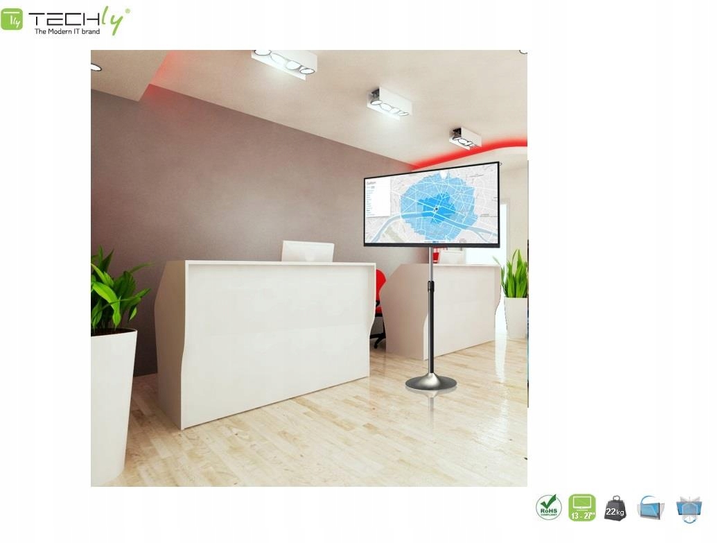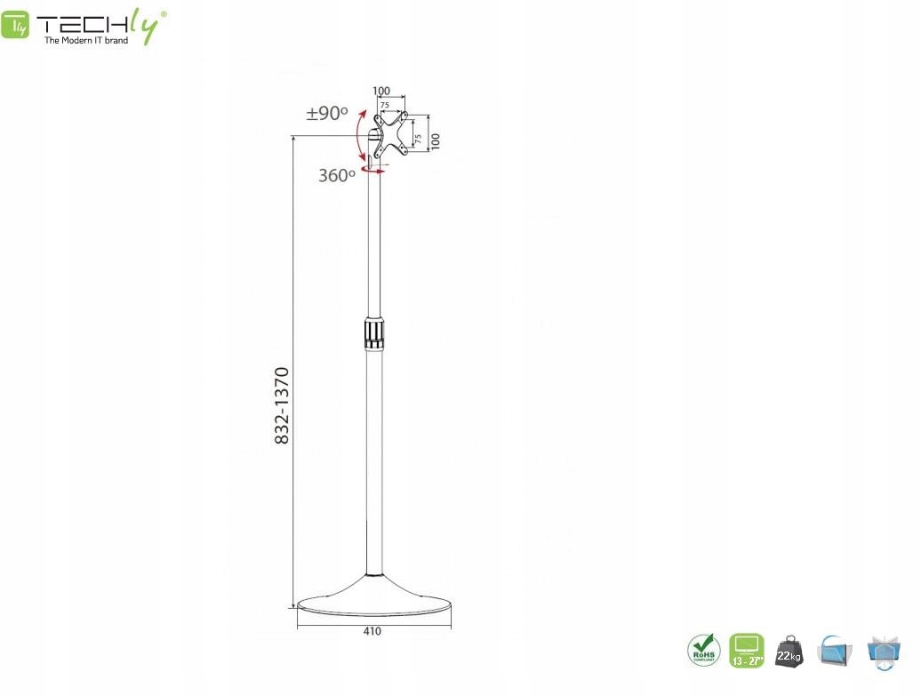 Напольная подставка Techly 13–27 дюймов, регулируемая 22 кг