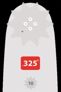 - В случае этого изделия - шаг составляет 0,325 дюйма (Расстояние между тремя заклепками составляет приблизительно 16,5 мм). /ul>