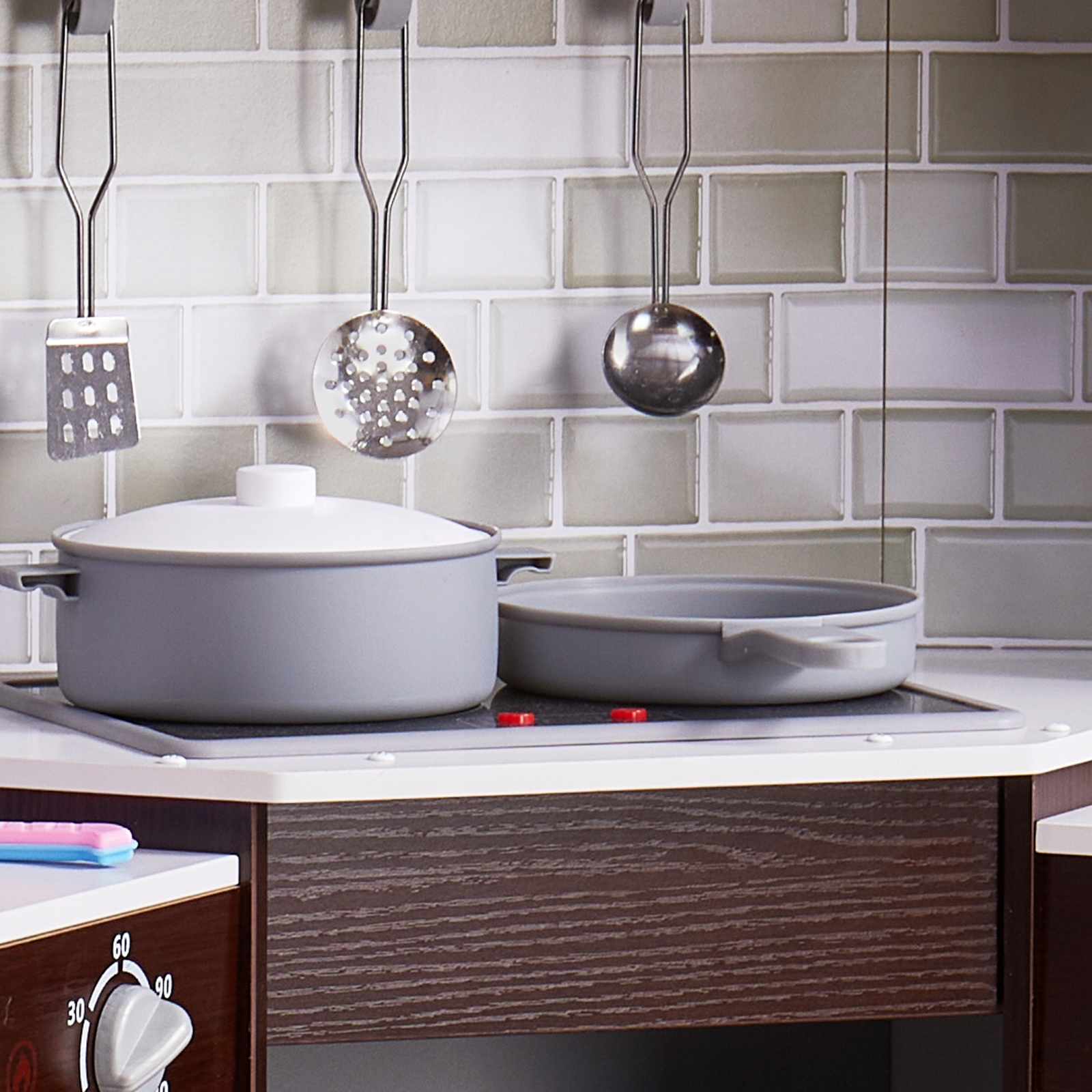 С помощью этого кухонного набора дети смогут быстро убрать за собой после игры. Он создан для того, чтобы все аксессуары были чистыми и аккуратными, а также помогали детям научиться организовывать свои игрушки.
