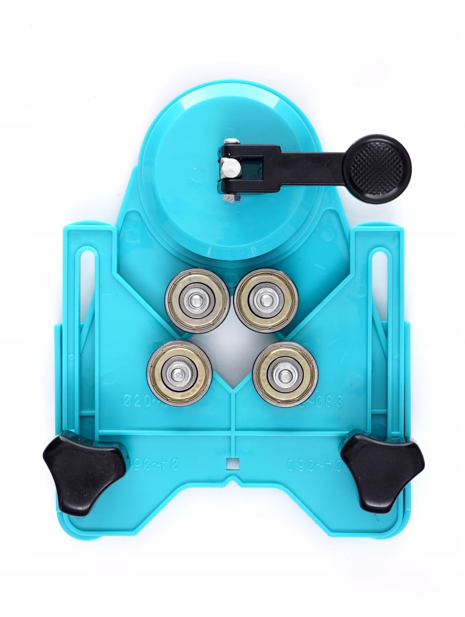 Направляющая для корончатых сверл, алмазных сверл и кольцевых пил размером от 4 до 83 мм, изготовлена из очень прочного материала ABS. Преимущества нашего устройства — легкая и быстрая настройка размера сверла, 4 подшипника и мощная присоска
