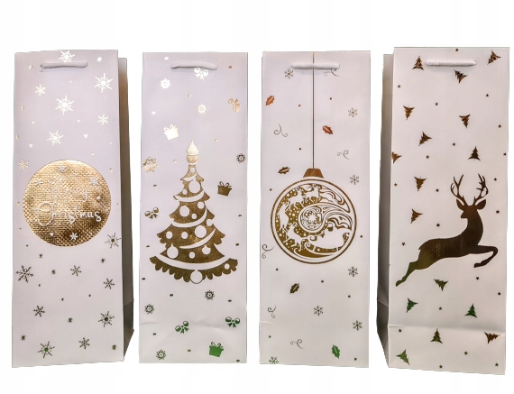 Элегантный подарочный пакет, украшенный звездами, надписями и тонкими дизайнами. Печать дополнительно сделан, чтобы отразить свет. Сделано из высокого качества, толстой бумаги. Ручки изготовлены из цветной струны.