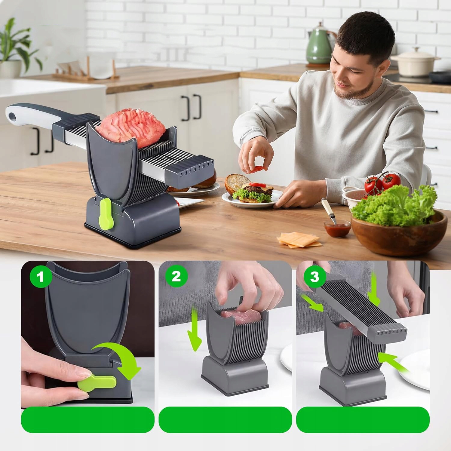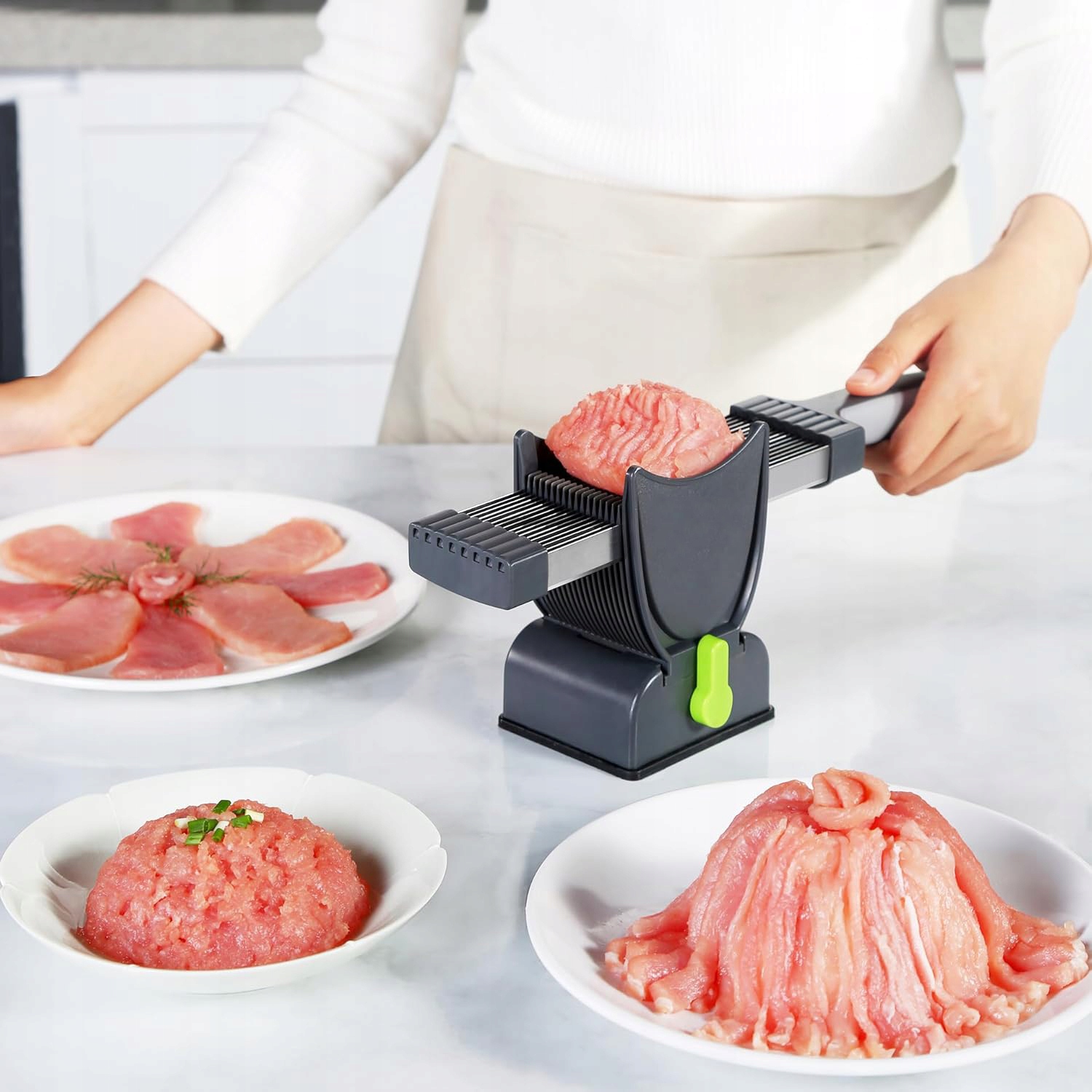 ✅17 лезвий - Этот набор для нарезки мяса представляет собой высокоточный режущий инструмент, оснащенный 17 лезвиями для эффективной нарезки. Он может разрезать свежее мясо на 18 тонких ломтиков за один прием. Подходит для всех видов свежего мяса, включая свинину, говядину, курицу и лосось, что упрощает приготовление еды. (Не подходит для замороженного и обезжиренного мяса)