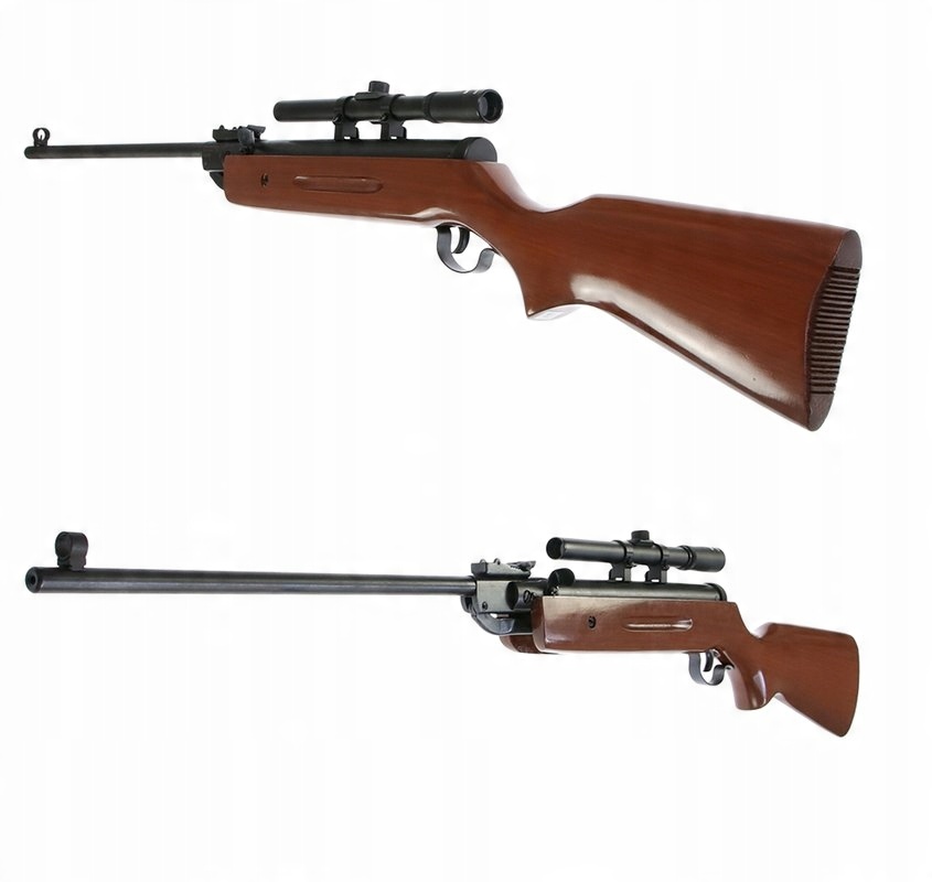 Пружинная пневматическая винтовка с классическим ломаным стволом и деревянной ложей, предназначенная для людей, которые ищут простую винтовку для отдыха и обучения стрельбе.