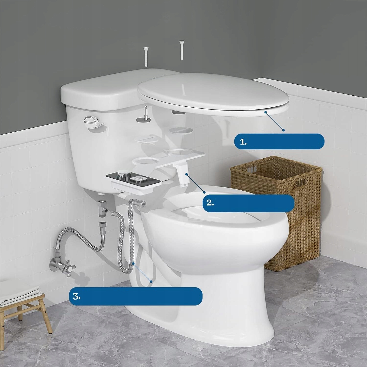 💧【Быстрая установка, приятная работа】 В комплект входят все детали и инструменты, необходимые для установки. Простая сборка и разборка стандартного невстраиваемого унитаза (бак отделен от сиденья и расположен почти вертикально), поэтому биде готово к использованию за считанные минуты. В комплект входит шланг в оплетке из нержавеющей стали длиной 80 см и латунный Т-образный соединитель, эффективно предотвращающий протечки.