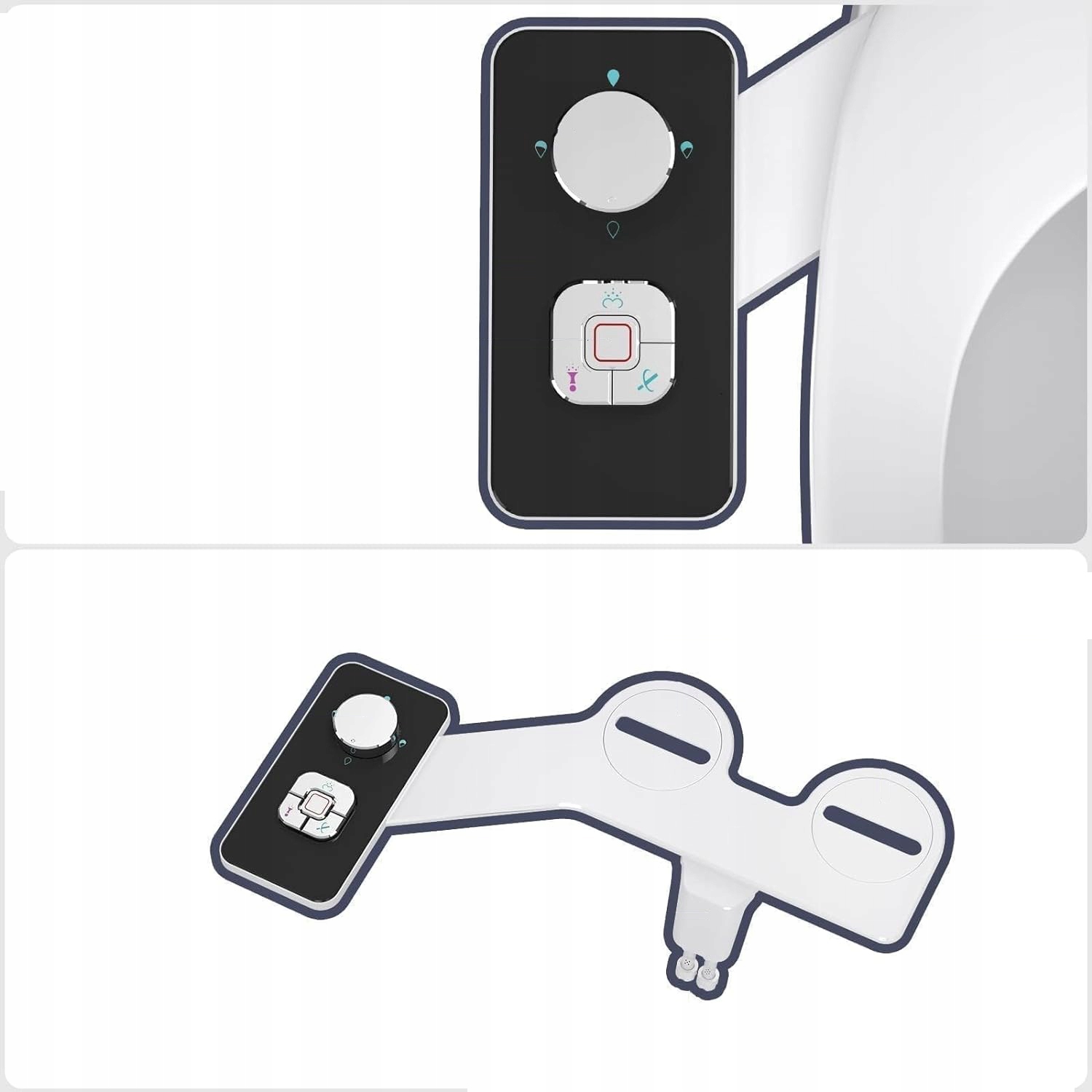 💧【Сверхтонкий корпус 0,5 см и стильная кнопочная панель】Эта насадка для биде толщиной всего 0,5 см является ультратонкой, что позволяет поддерживать нормальную высоту сиденья унитаза, но при этом очень прочной. Тонкая глянцевая черная панель имеет глянцевую отделку и оснащена позолоченными кнопками и ручками, что придает ей элегантный и уникальный вид.