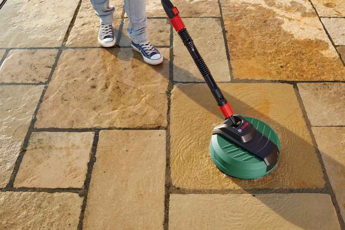 AquaSurf 280 насадка для мытья различных типов поверхностей позволяет убирать большие подъезды и внутренние дворики. Он легко передвигается по земле, моментально удаляя водоросли, лишайник, мох и другую трудноудаляемую грязь.