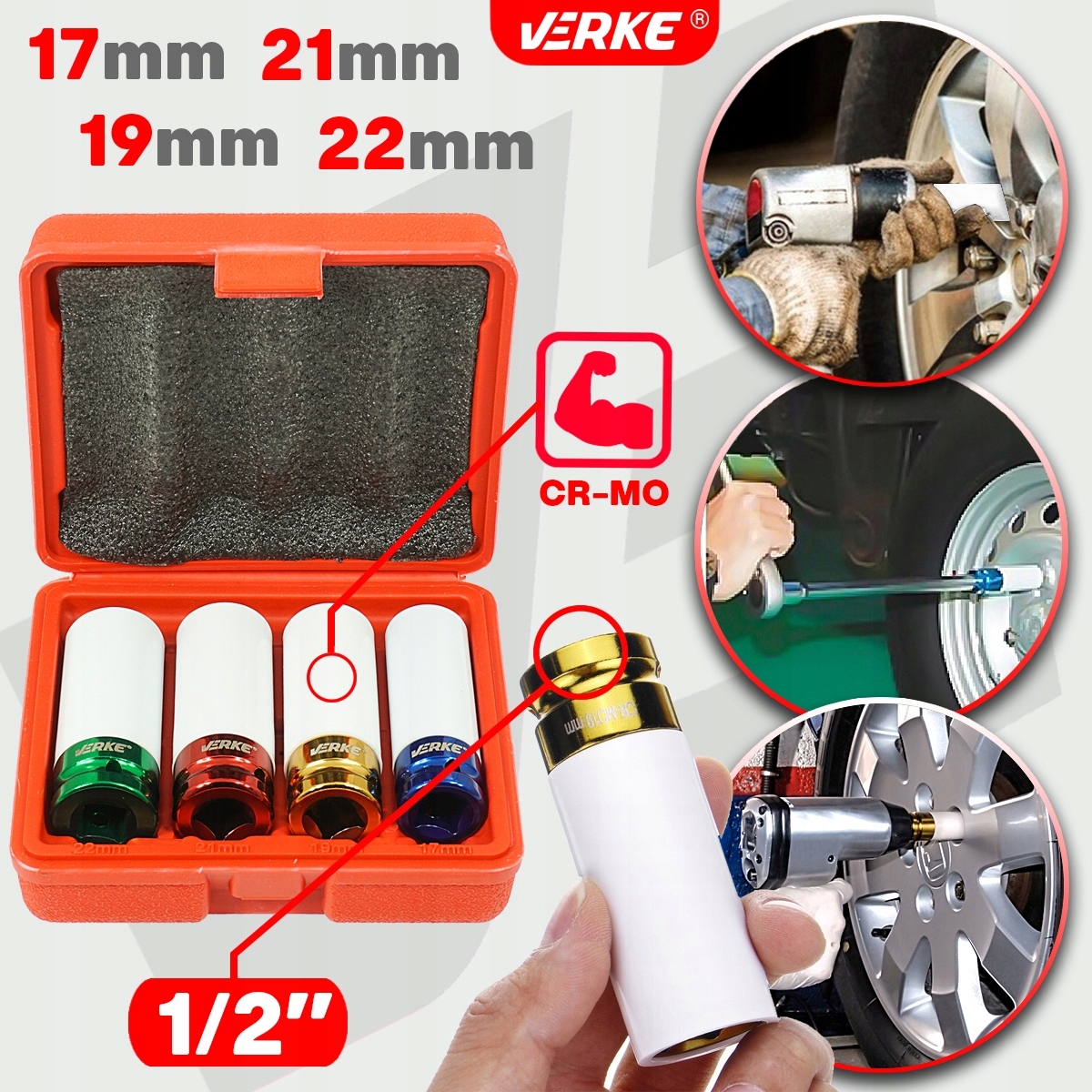 Nasadki udarowe do felg aluminiowych Verke V86102 17-22mm