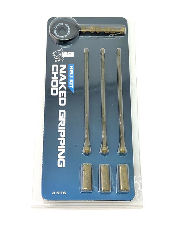 Набор Naked Gripping Chod Bead Heli Kit содержит стволы, состоящие из двух частей, внутри которых находится вертлюг с поводком с отверстием минимального диаметра, позволяющим фиксировать чод в одном месте на леске или флюорокарбоне. Силиконовая трубка поглощает агрессивные рывки головы карпа, отделяет поводок от грузила, не давая рыбе напрягаться во время борьбы, исключает риск запутывания снасти во время заброса. В каждой упаковке содержится три полных набора.