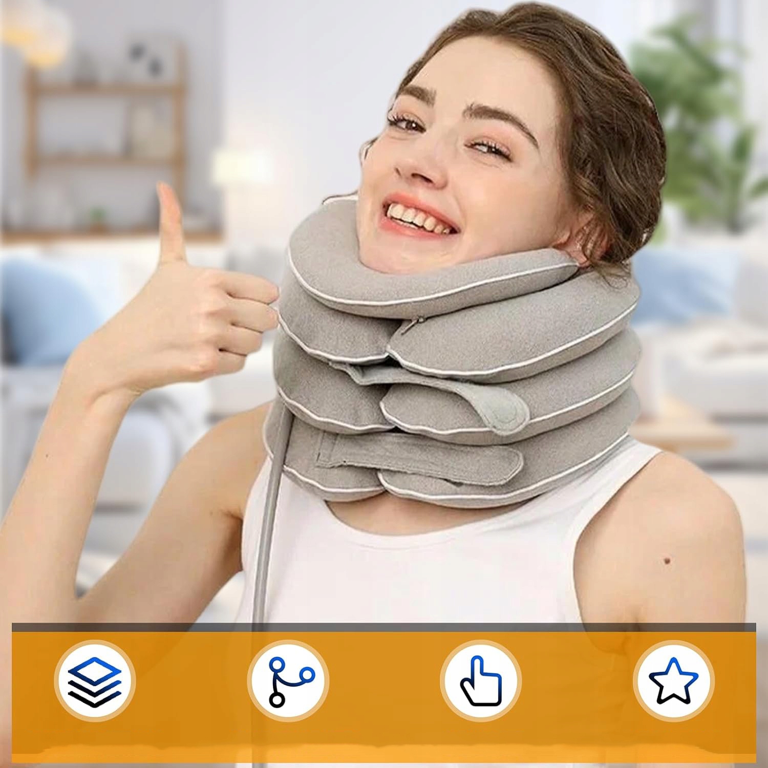 Оснащен системой регулировки поддержки подбородка 3+1 с регулировкой вертикальной высоты, обеспечивает эффективное сцепление шеи, предотвращая давление на лицо и повышая комфорт использования. Не требует сложной сборки; Устройство быстро надувается всего за 30 секунд. Эта конструкция эффективно помогает пользователям поддерживать правильное положение шеи, облегчая боль в шее, напряжение, сжатие нервов и мышечные спазмы, вызванные плохой осанкой.
