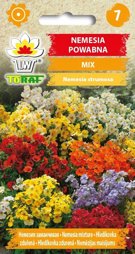 Однолетнее растение с разноцветными цветками красного, розового, желтого, оранжевого и кремового цветов. Идеально подходит для клумб, клумб и бордюров. Цветет с июня по август. Высота 15-25см. Посев семян в IV в поле или в V в грунт
