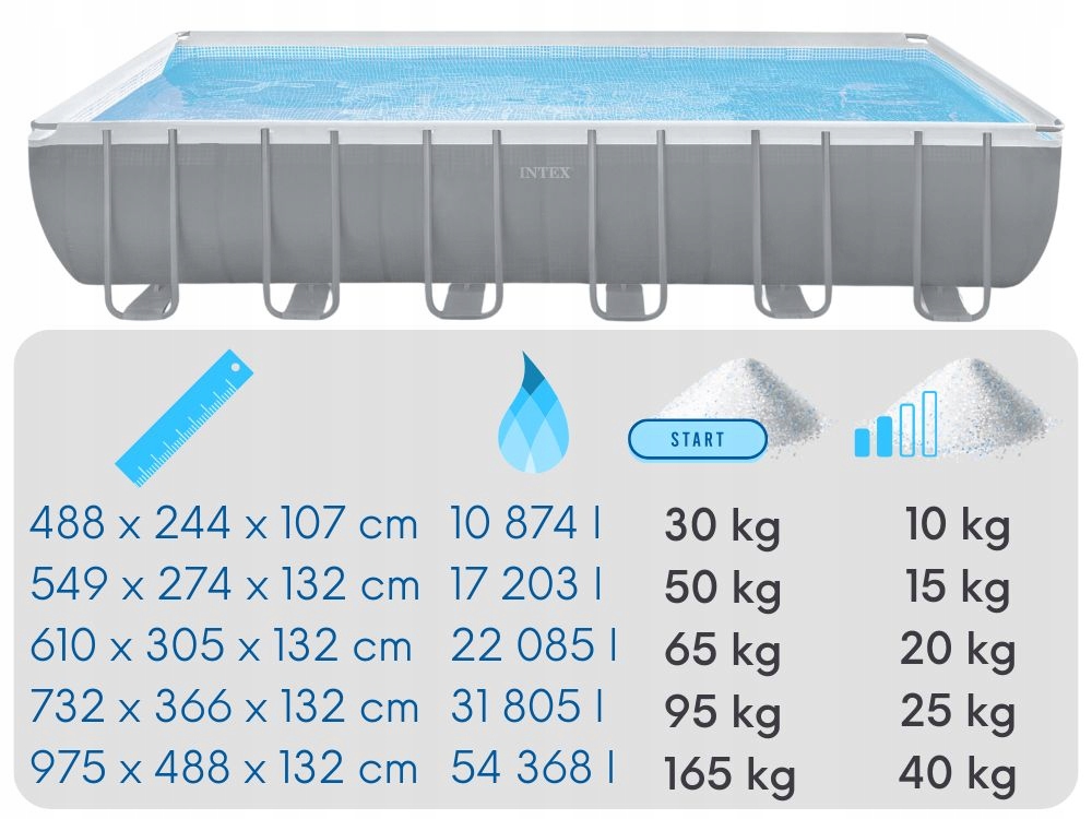 <ул>КОЛИЧЕСТВО СОЛИ, НЕОБХОДИМОЕ ДЛЯ ПЕРВОГО НАПОЛНЕНИЯ: ВМЕСТИМОСТЬ БАССЕЙНА X 0,003