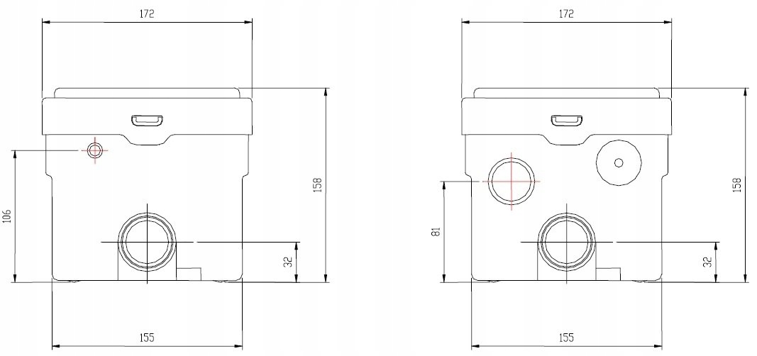 - возможность подключения умывальника, ванны, душа или биде с обеих сторон насоса.