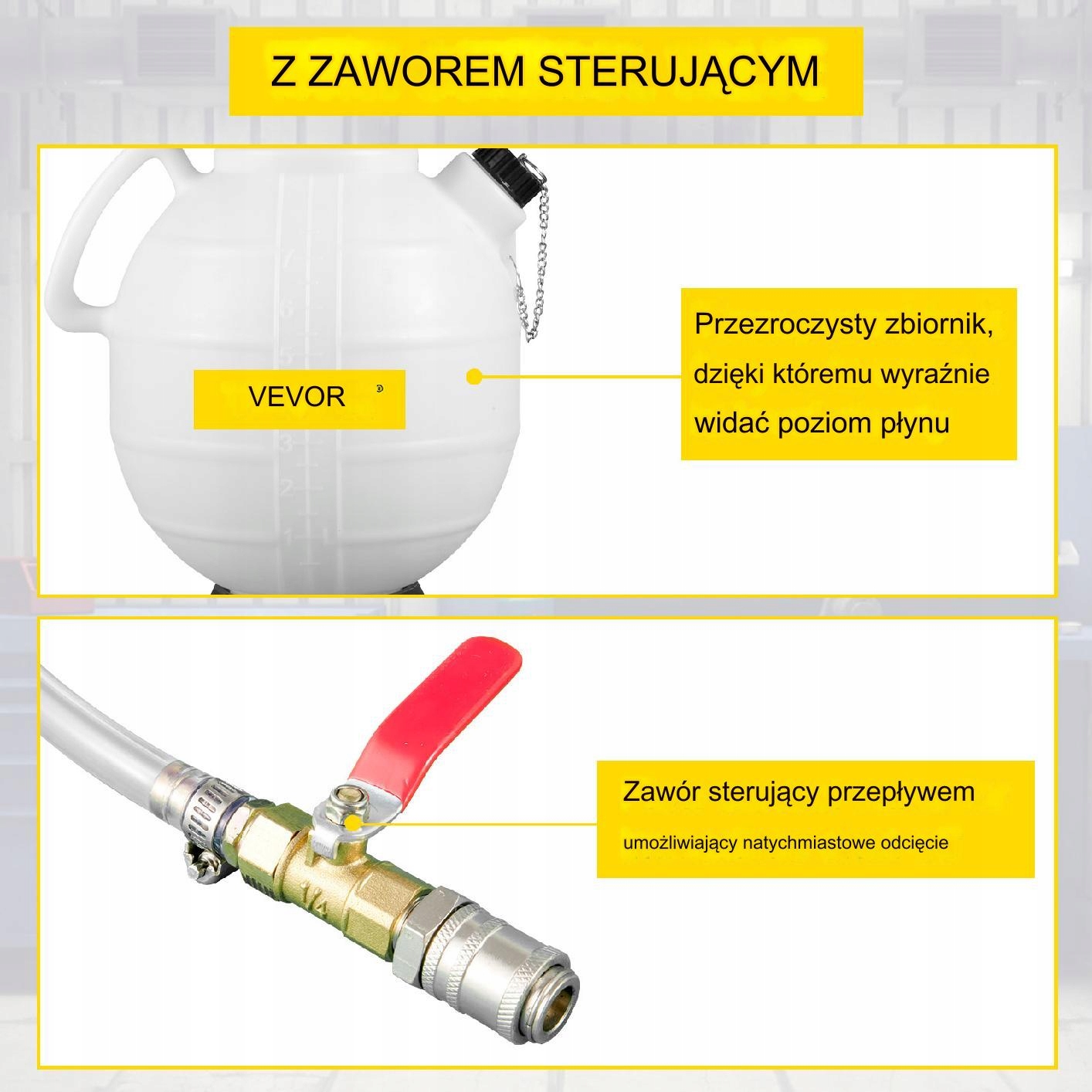 Прозрачный резервуар позволяет четко увидеть уровень жидкости, и клапан управления потоком позволяет вам немедленно отключить.