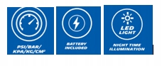 - Возможность переключения между: PSI, BAR и кПа