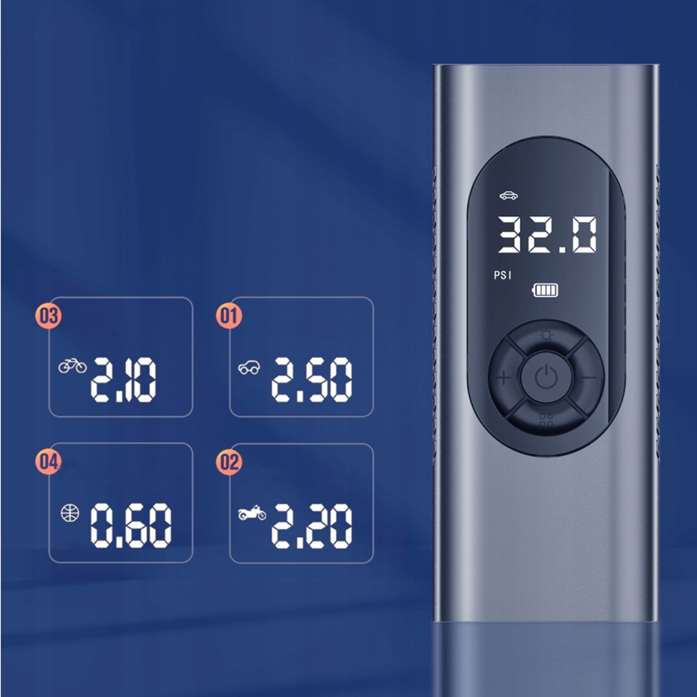 Под светодиодным дисплеем есть кнопки функций, которые можно настроить в соответствии с вашими потребностями. Вам не нужно беспокоиться о постоянном взгляде на дисплей - устройство автоматически остановит процесс накачки воздуха, когда шина достигнет идеального уровня давления. Он также имеет состояние батареи.