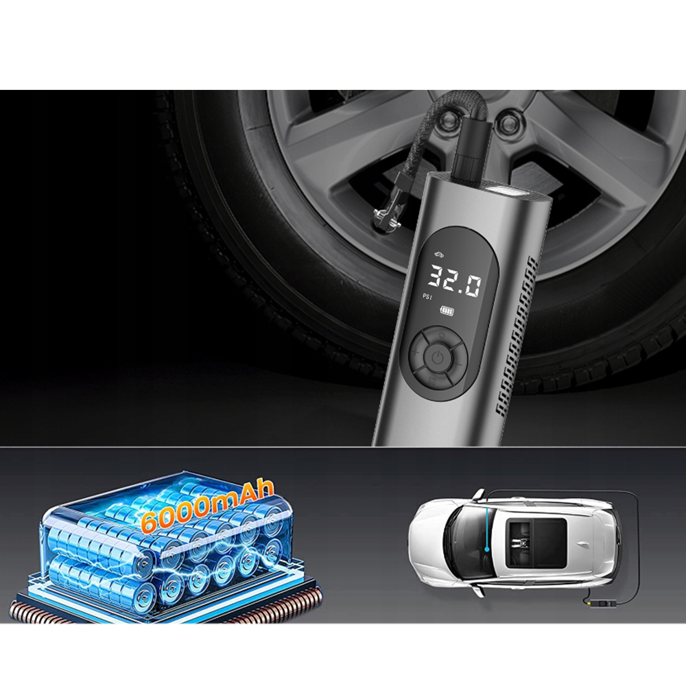 Электрический воздушный насос с батареей 6000 мАч. Беспроводной компрессор догиал с цифровым ЖК -дисплеем, мини -насос шин с светодиодным освещением, велосипед, мотоцикл, автомобильные шарики и раздувание