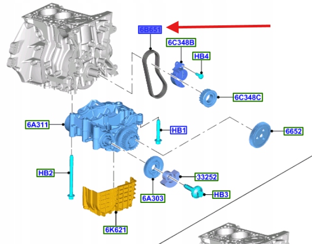 РЕМЕНЬ МАСЛЯНОГО НАСОСА АВТОМАТ FOCUS 2018- 1.0 EB 2235490 _ JX6G-6B651-AB