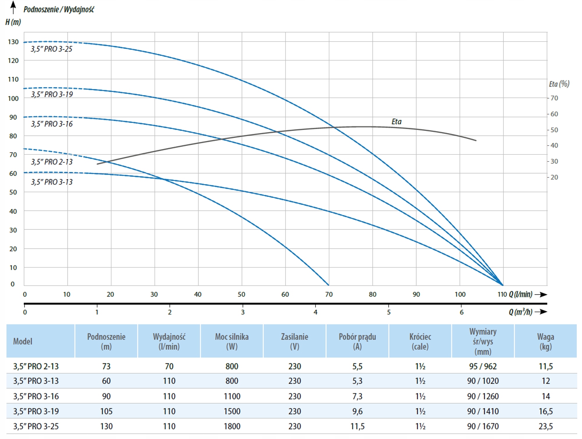 Зависимость между грузоподъемностью и высотой подъема (давлением) показана в прилагаемой таблице (1). Проверьте, соответствует ли выбранная вами рабочая точка возможностям насоса. Если вам нужна помощь в выборе, мы будем рады помочь.