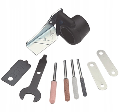 - В комплекте: 1 заточное приспособление с угловой направляющей, 1 регулировочный измерительный прибор, 1 гаечный ключ, 4 точильных камня для заточки бензопил 4,0 мм (453), 4,5 мм (457), 4,8 мм (454) ) и 5,6 мм (455), 2 проставки, 1 краткое руководство/руководство пользователя.