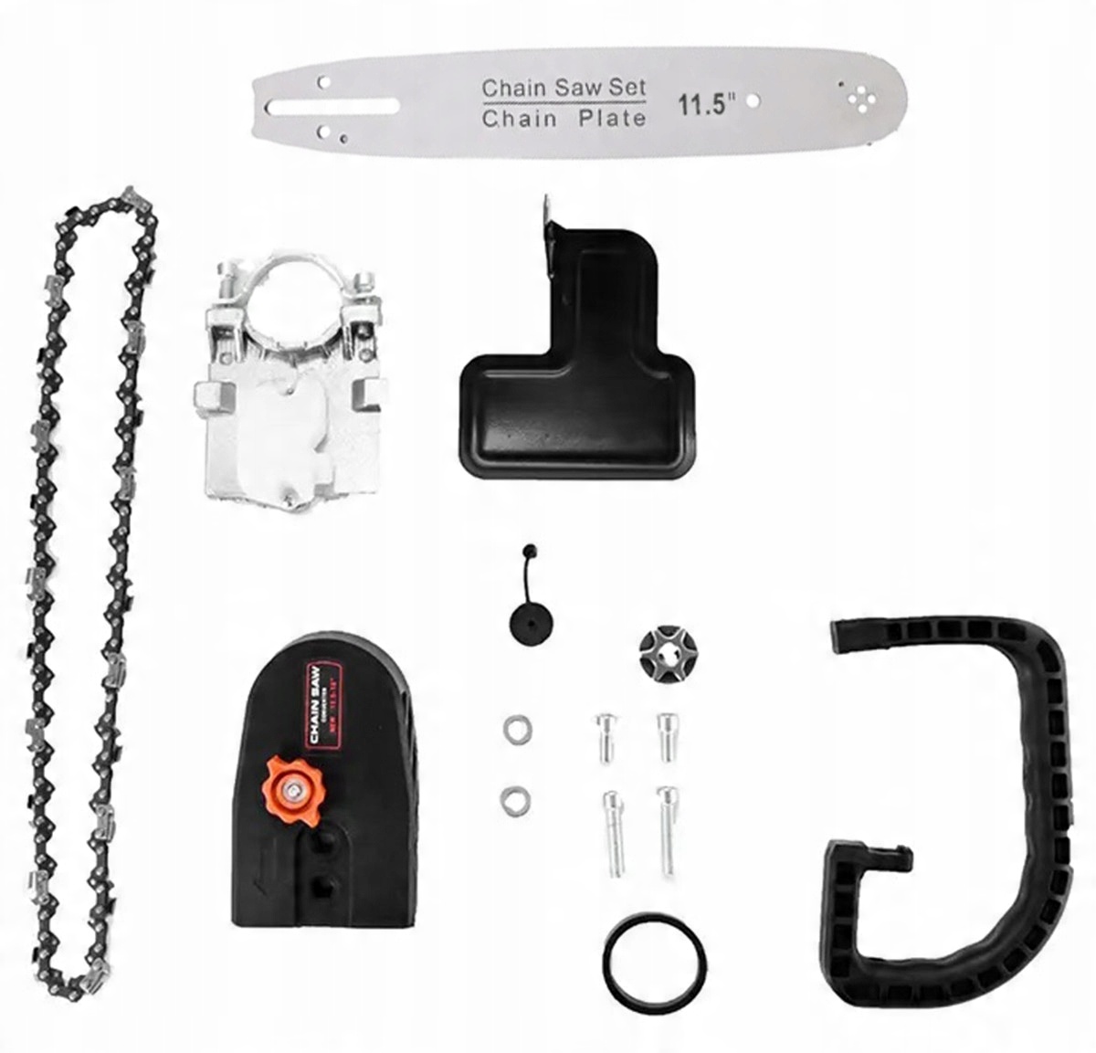 Насадка для угловой шлифовальной машины – цепная пила. Чрезвычайно практичный гаджет, который превратит вашу болгарку в удобную бензопилу. Конвертер крепится к гнезду болгарки как классический диск. Удобная закругленная ручка обеспечивает максимальный комфорт работы. Специальный чехол за цепью повышает безопасность во время использования.