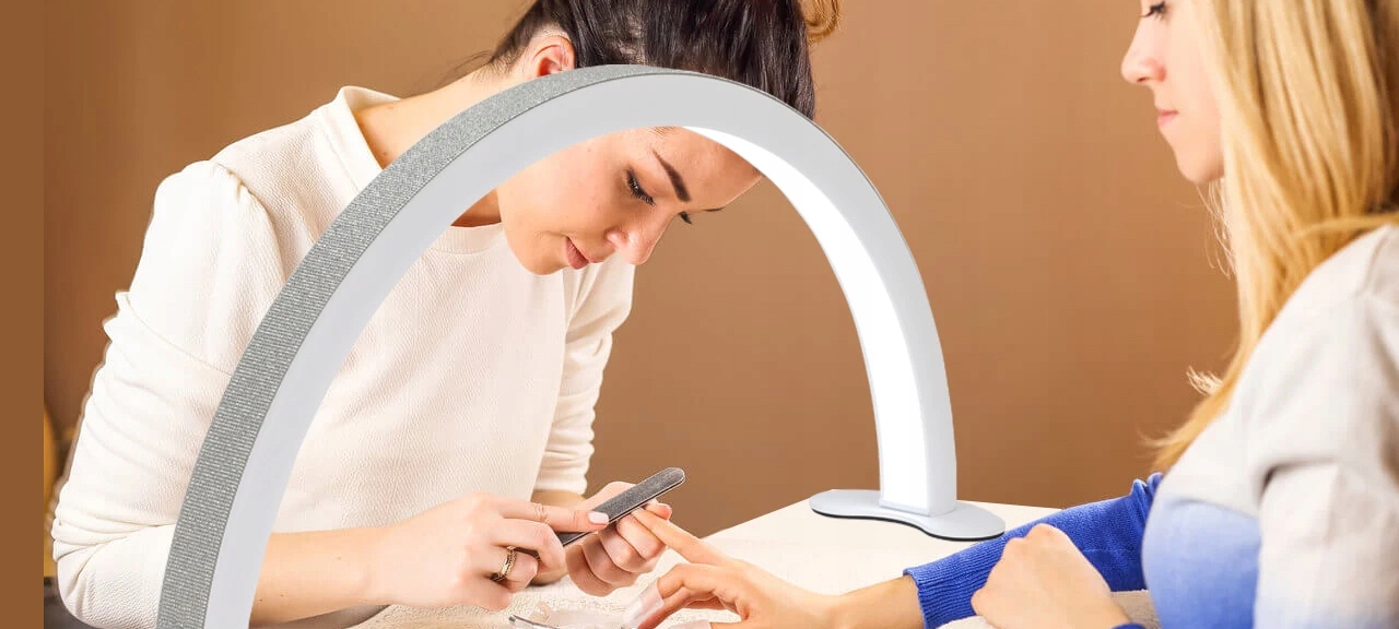 Светодиодная лампа в форме полумесяца идеально подходит для маникюра, обеспечивая свет с разной цветовой температурой.