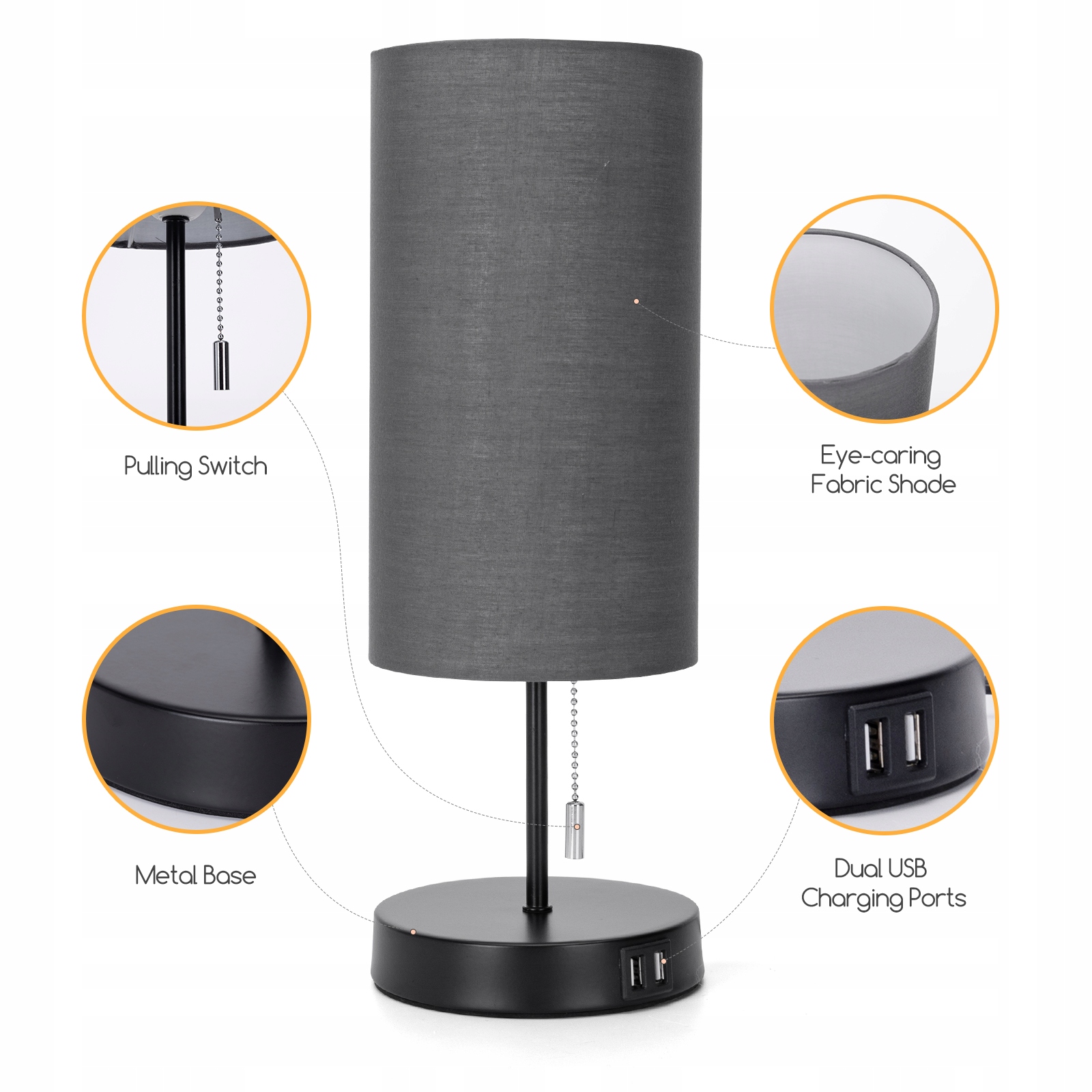 НІЧНИК МЕТАЛЕВИЙ НАСТІЛЬНИЙ E27 2x USB зарядний пристрій