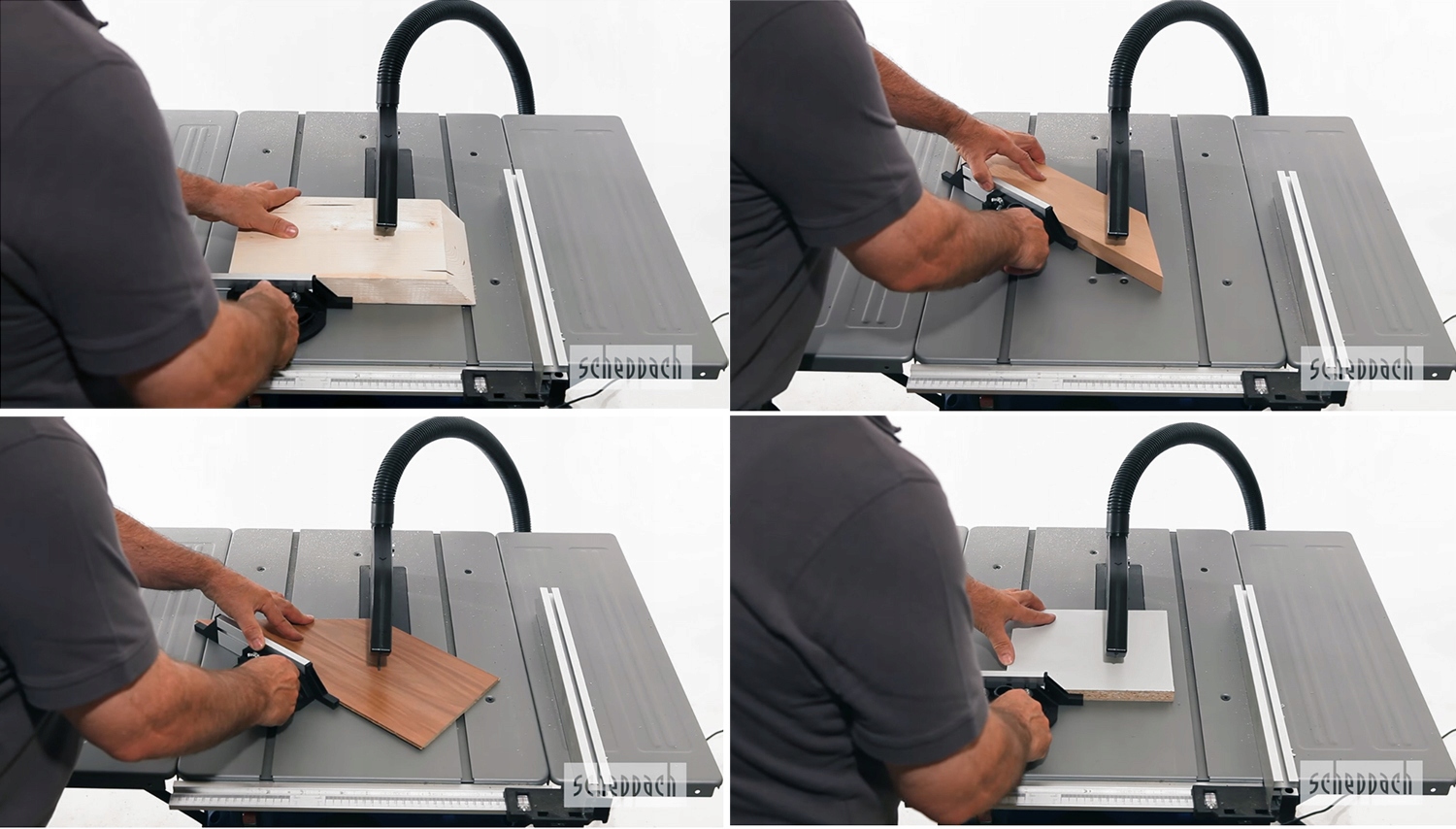 Благодаря боковой направляющей можно обрезать доски до нужной ширины.
