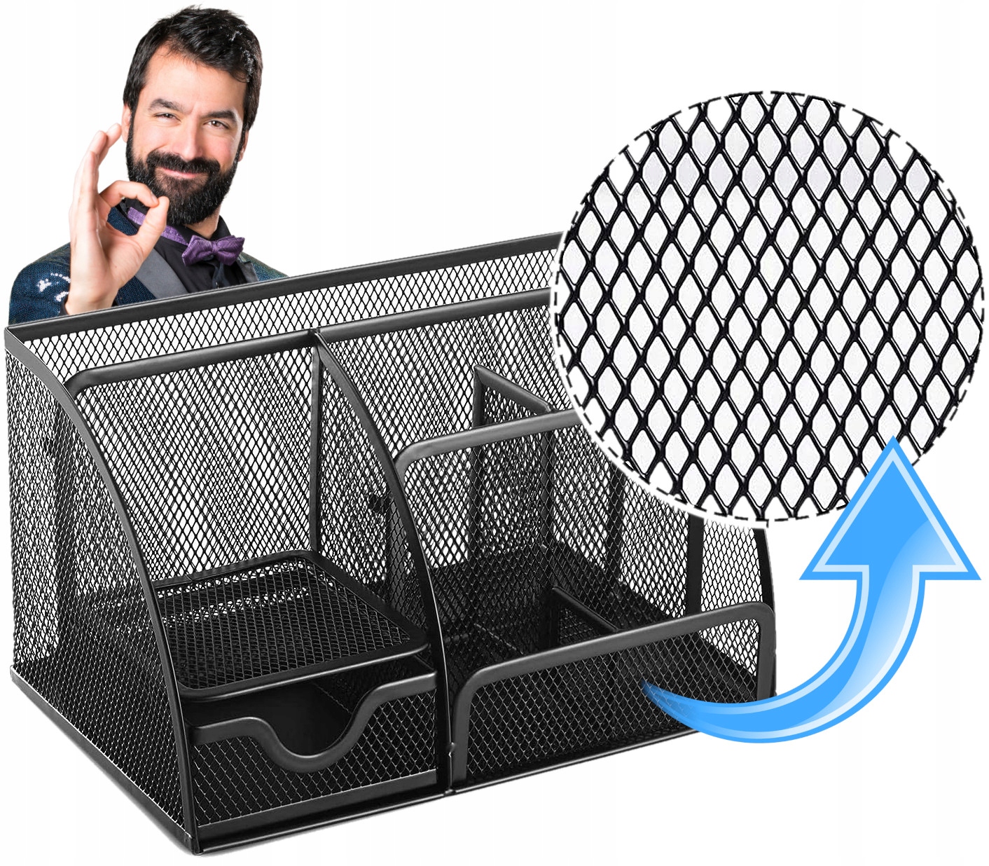 Представляем настольный органайзер, который поможет вам поддерживать порядок и станет практичным решением для хранения и организации необходимых офисных принадлежностей. Этот просторный ящик для инструментов, изготовленный из материалов высочайшего качества, имеет до 6 практичных отделений, включая удобный выдвижной ящик для мелких предметов.
