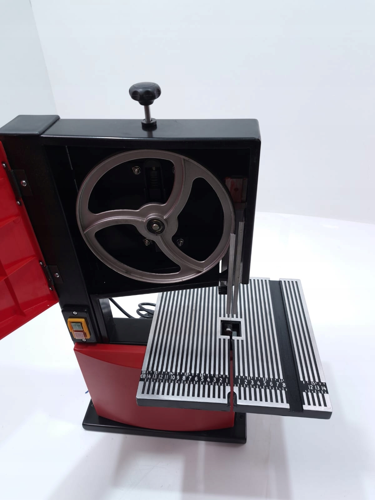- Стабильный стол для распиловки 0–45°: Ленточные пилы по дереву оснащены прочным литым алюминиевым столом размером 300 x 300 мм (11,8 x 11,8 дюйма), обеспечивающим большую и прочную рабочую поверхность. Ручка регулировки наклона стола позволяет быстро наклонить стол на 45° для точной резки под углом.
