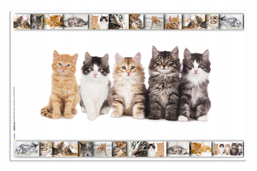 Практичный настольный коврик с напечатанными фотографиями кошек. Он защитит столешницу от повреждений во время выполнения домашней работы или рисования.