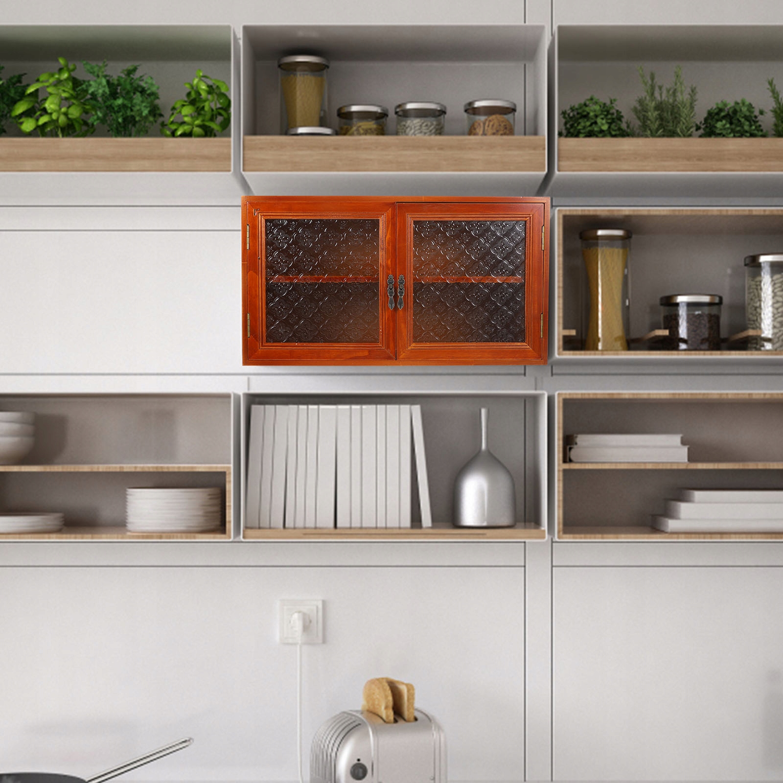 ✅ Шкаф-столешница, изготовленный из прочного дерева и стекла, имеет превосходную текстуру и более длительный срок службы.
