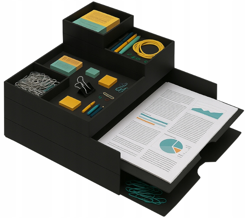 Элегантный настольный органайзер, 6 частей, черный, комплект с лотками для документов