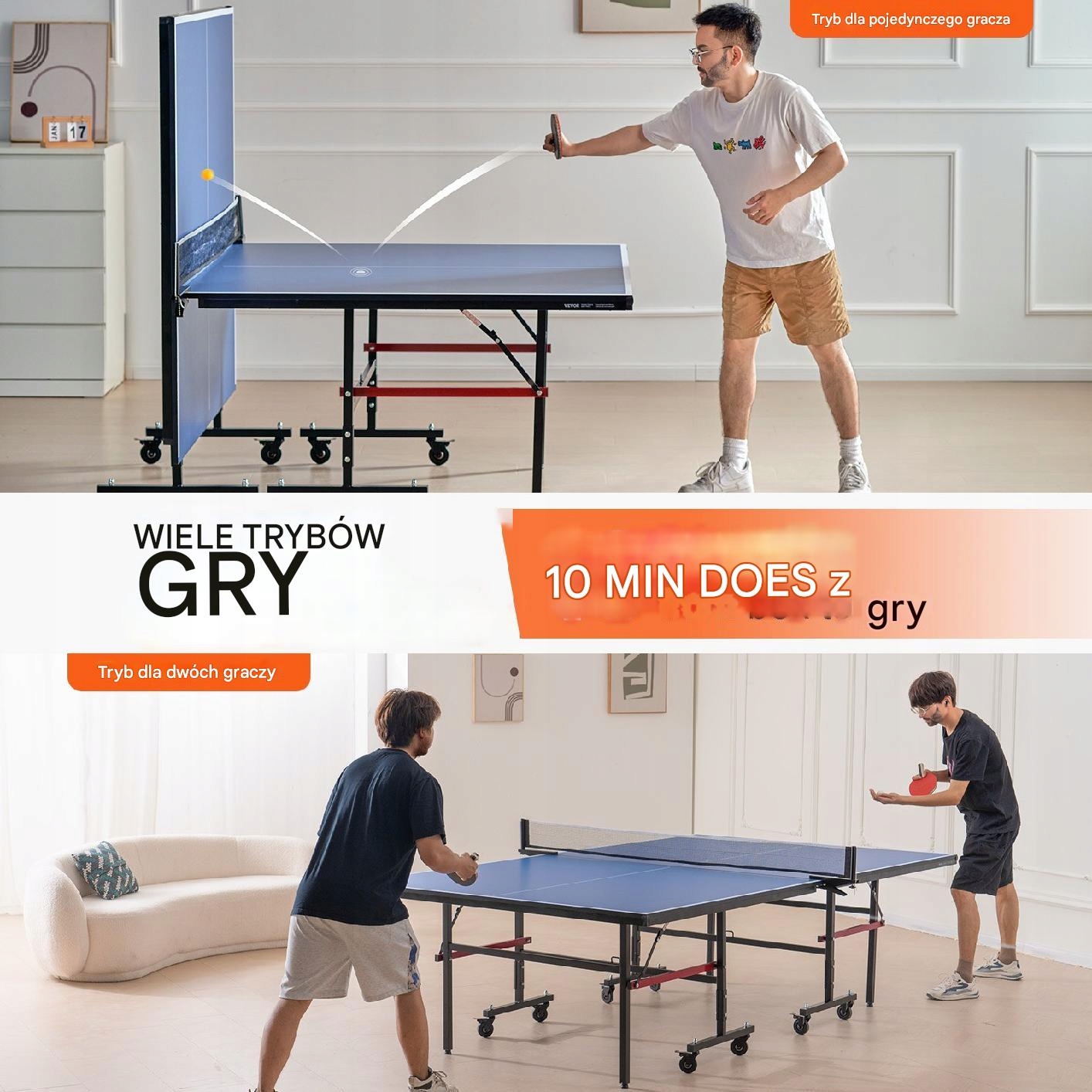 Стол для пинг-понга оснащен прочными колесами, которые позволяют его свободно перемещать с одного места на другое. Колеса имеют фиксаторы, благодаря которым стол можно устойчиво поставить на выбранную поверхность, исключив риск скольжения во время игры. Это идеальное решение для людей, которым нужна гибкость и мобильность в использовании.
