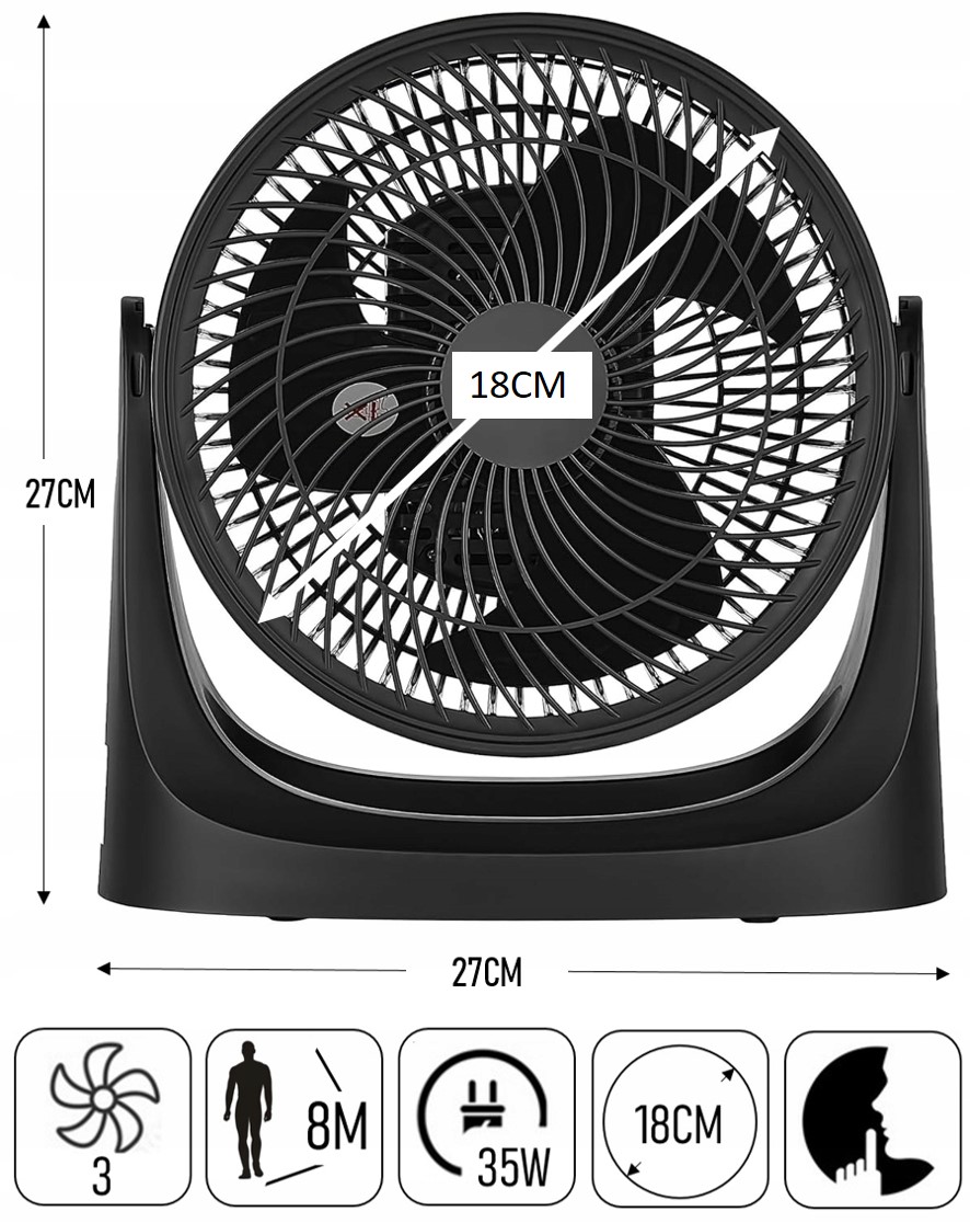 НАСТІЛЬНИЙ ВЕНТИЛЯТОР ЧОРНИЙ 3 ШВИДКОСТІ 35 ВТ ПОТУЖНИЙ ТИХИЙ 18 СМ