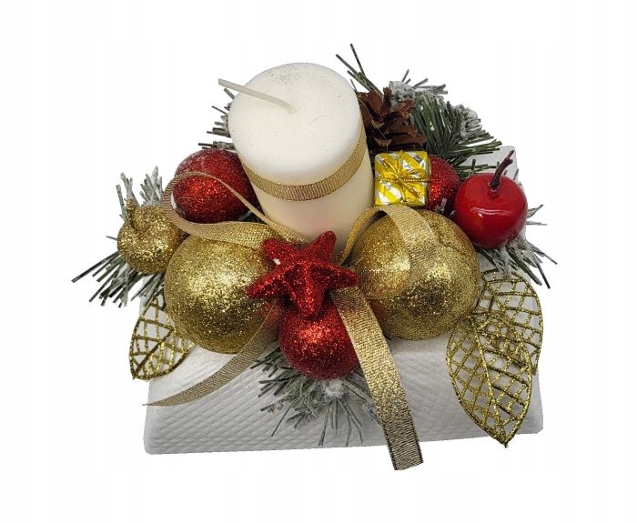 Очень красивое новогоднее украшение для стола и не только в красно-золотой цветовой гамме со свечой.