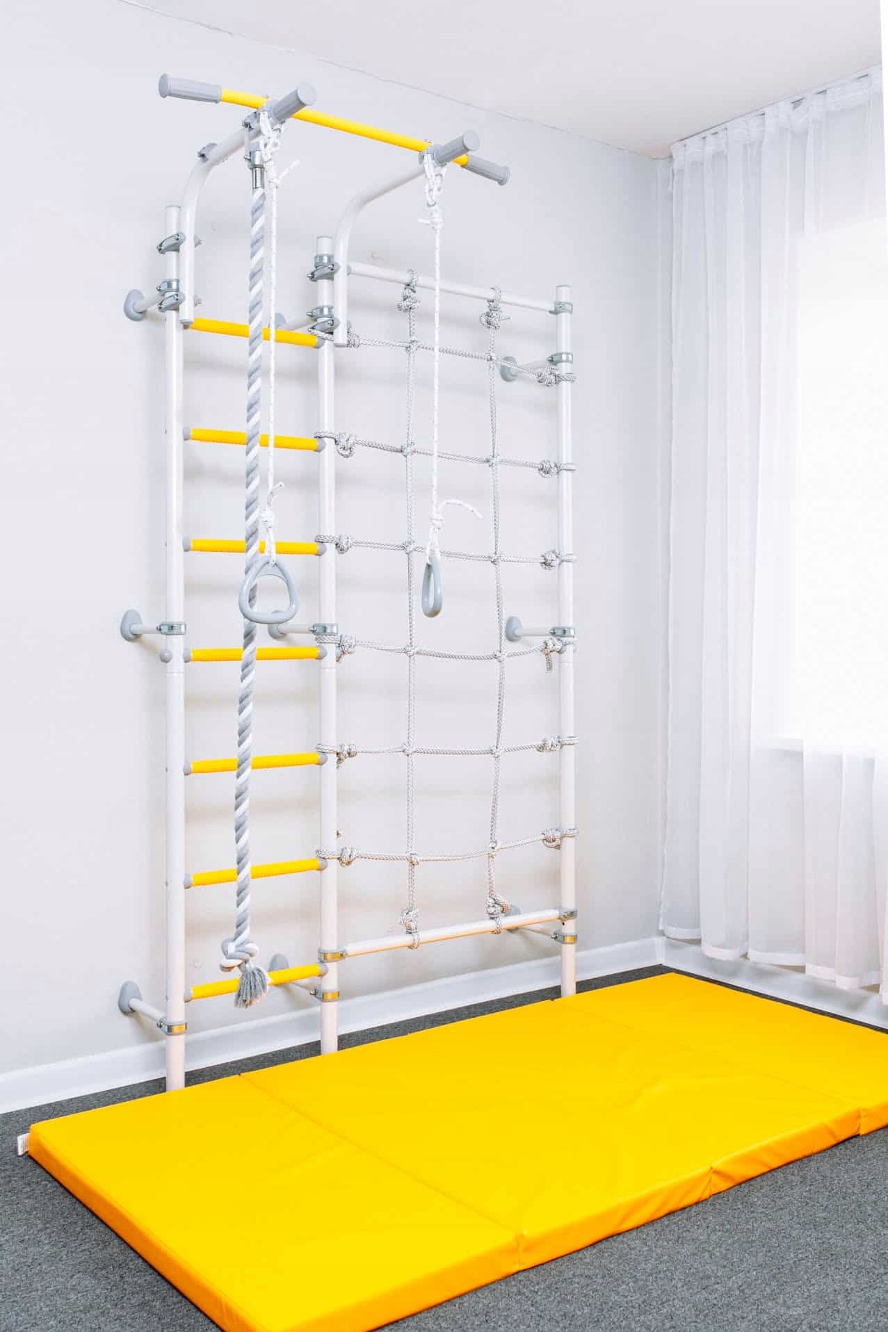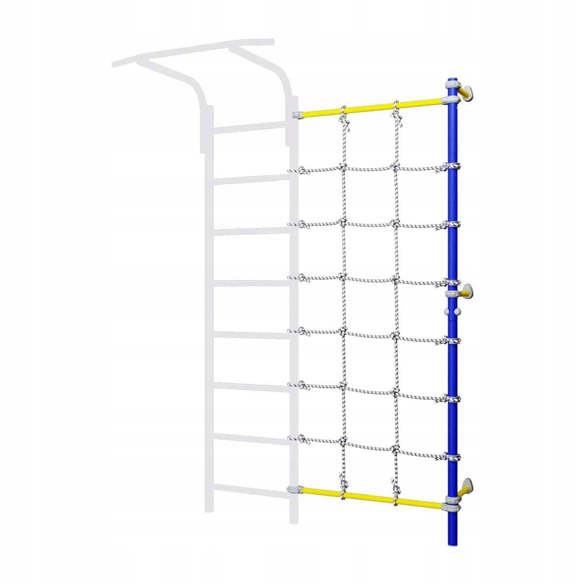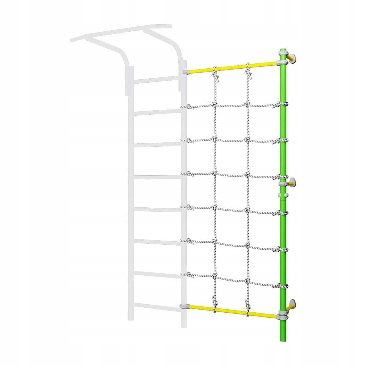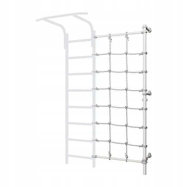 Настенный столб с сеткой, прикрепленный к настенной гимнастической лестнице, — отличное дополнение, которое предоставит возможности для более широкого спектра упражнений и развлечений с домашней лестницей для упражнений. Неустойчивая веревочная сетка, установленная между гимнастической лестницей и шестом, заставляет ребенка при лазании задействовать глубокие мышцы, отвечающие за поддержание и стабилизацию позвоночника.