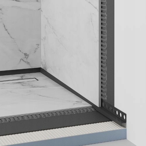 Цель наклонной планки – потенциально маскировать неприглядные торцы плитки, обеспечивая при этом естественный наклон в сторону слива без необходимости точного разрезания плитки. Благодаря этому решению душевой поддон соответствует самым высоким стандартам как технически, гарантируя правильный отвод воды, так и визуально, придавая ванной комнате элегантный характер.