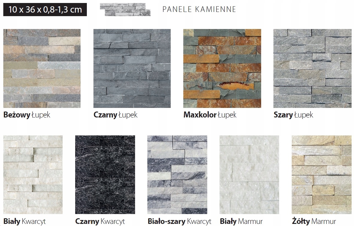 — идеальное решение как для декоративных фасадов, так и для декоративного покрытия стен в интерьерах домов и квартир. Каменные панели формата 10х36 см изготавливаются путем соединения небольших полосок камня толщиной 0,8-1,2 см с помощью клея на основе специальных смол. Их небольшой формат и легкость обеспечивают исключительно легкую установку. Для сборки таких элементов мы рекомендуем использовать эластичный клей. Красота натурального камня гарантирует вневременной и чрезвычайно декоративный внешний вид вашего дома.