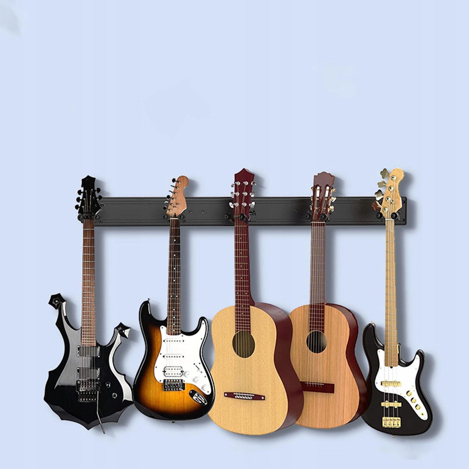 Настенная стойка для гитары с пятью регулируемыми гитарами.