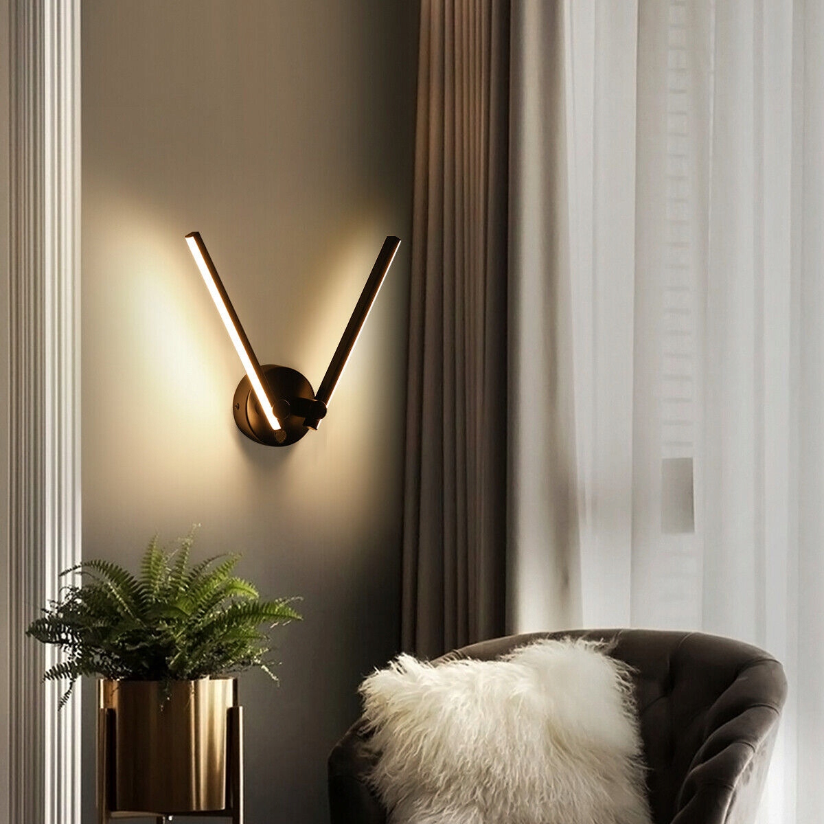 - Двойная настенная конструкция настенной лампы, на стене, установленные на стене два рычага, регулируемые в диапазоне 300 °, которые можно повернуть или наклоняться по мере необходимости, создавая тем самым индивидуальное настроение освещения в соответствии с желаниями.