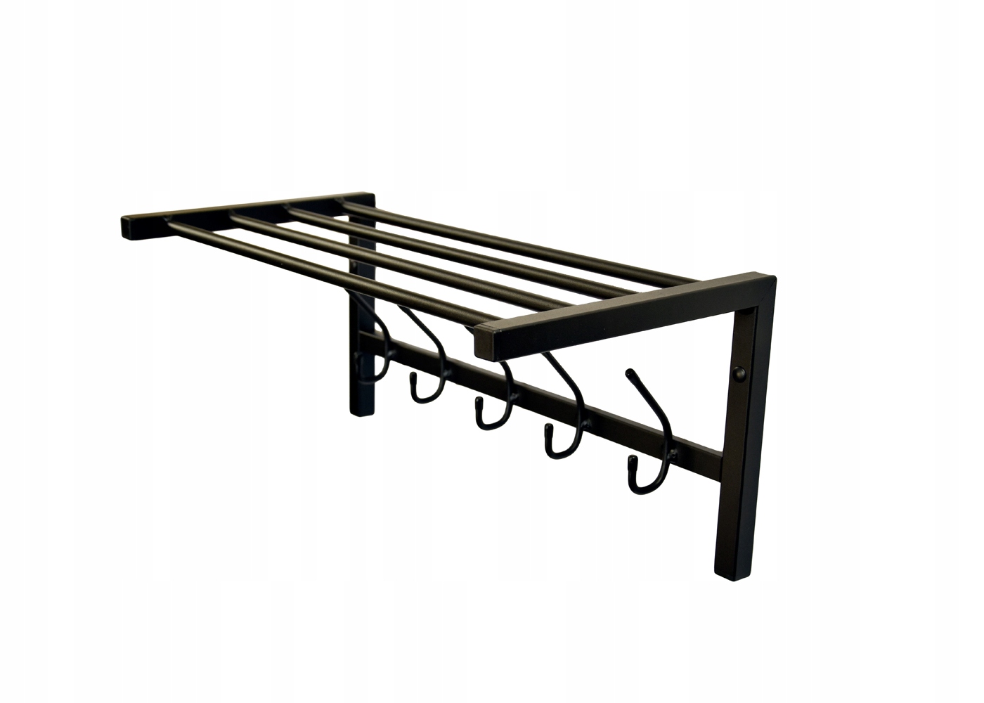 Вешалка на 100% произведена в Польше, прочно изготовлена из стали. Имеет 5 прочных держателей для одежды. Окрашены в электростатическом поле черной структурной краской. Он идеально вписывается в любой интерьер. Сварная подвеска поставляется в комплекте.