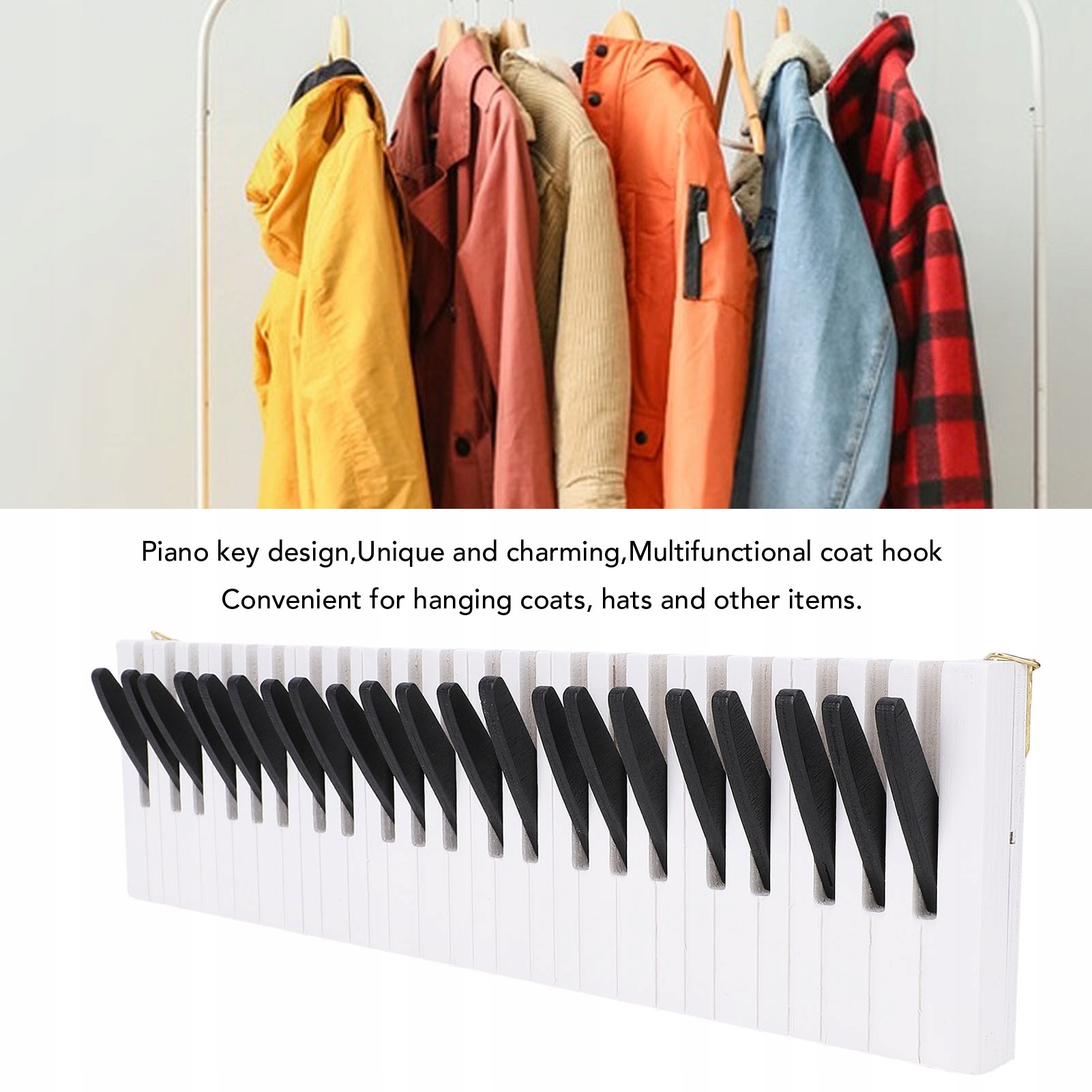 Настенная вешалка в скандинавском стиле с мотивом фортепиано. Деревянный XB