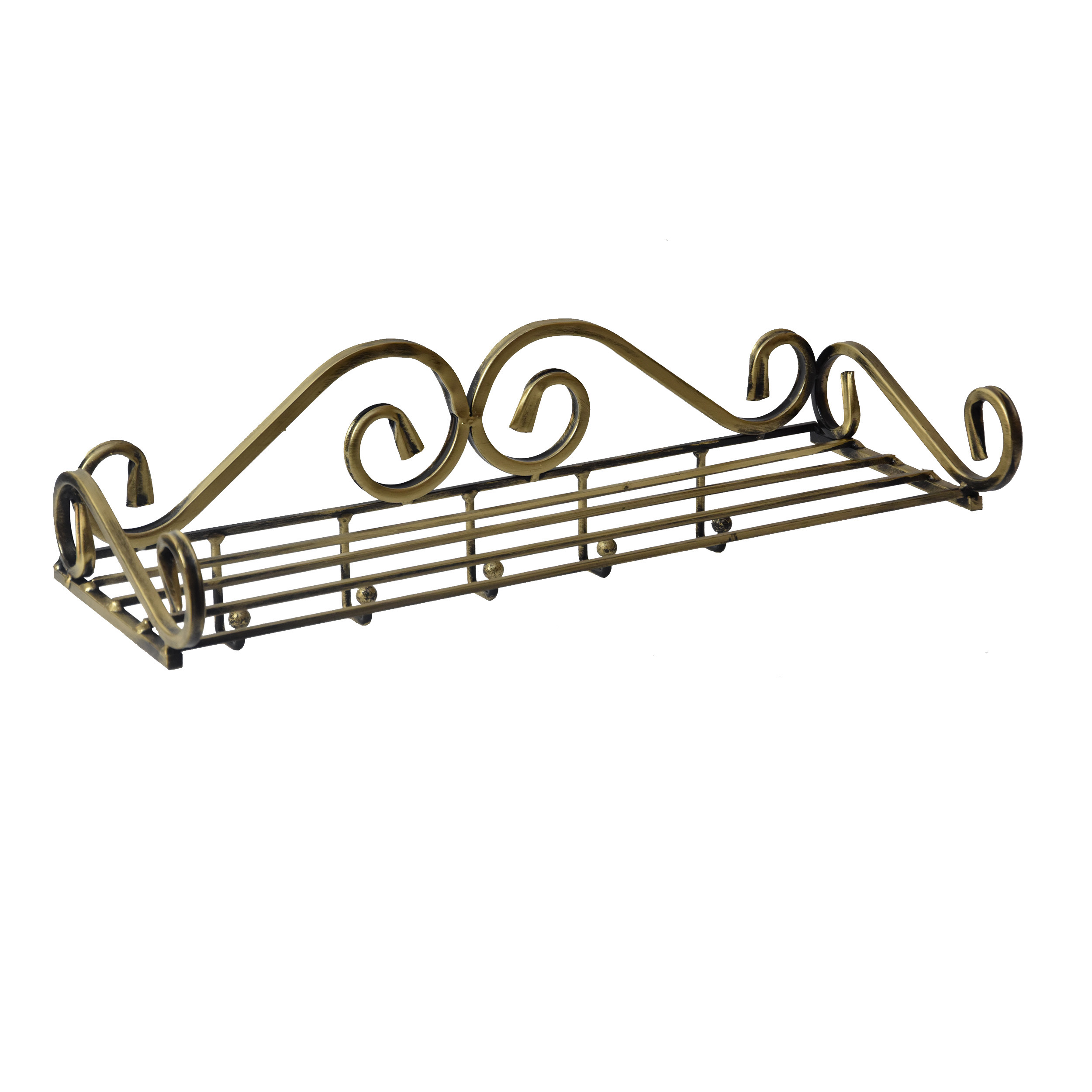 Устойчивая, прочная, изготовлена из металла, польского производства, несмотря на небольшие габариты, функциональна и очень вместительна, имеет 5 ручек для одежды и полку для шапок и шарфов, ее внешний вид также прекрасно украсит прихожую, кабинет и кабинет. Выполнены в золотой патине, общие размеры: