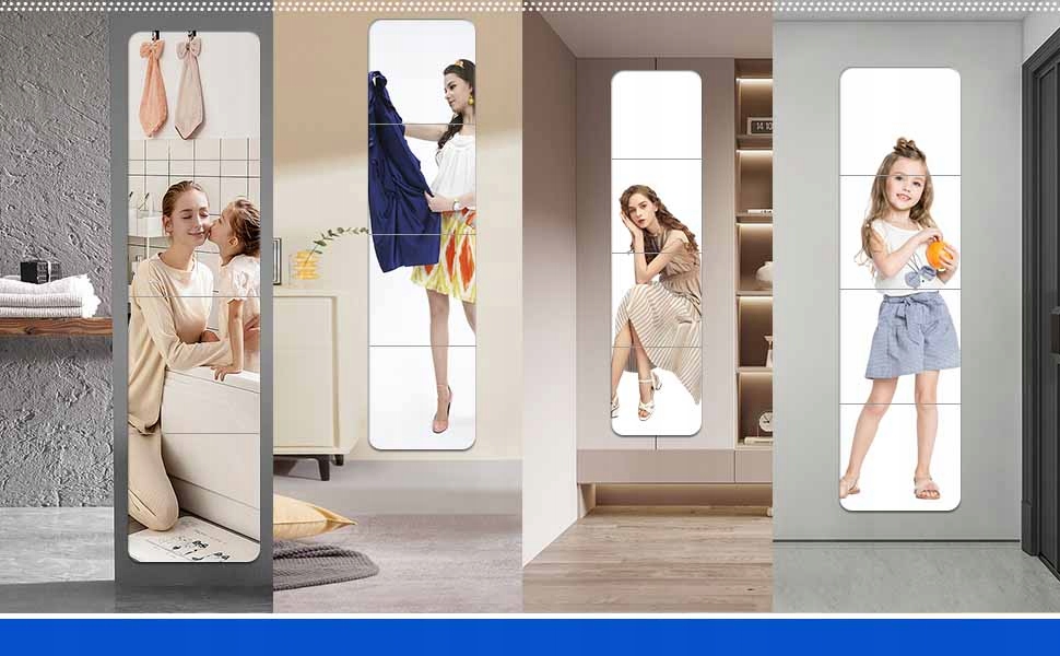 🪞【 Легкая установка】 полное зеркало, стоящее с 4 зеркалами в ванной комнате. Зеркальная стена может быть прикреплена к гладким стенам, стенам, окрашенными латексной краской, настенной мебелью со светлыми плитками или деревянными дверями. Это хорошее зеркало для зеркал с полным размером, но не для обоев, стен с волдырями, стенами, падающими пеплом, влажными стенами.