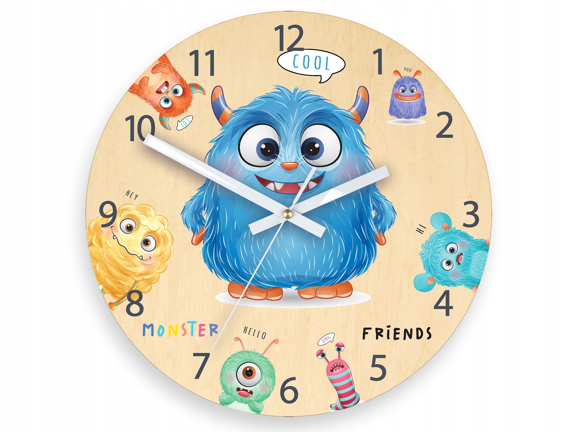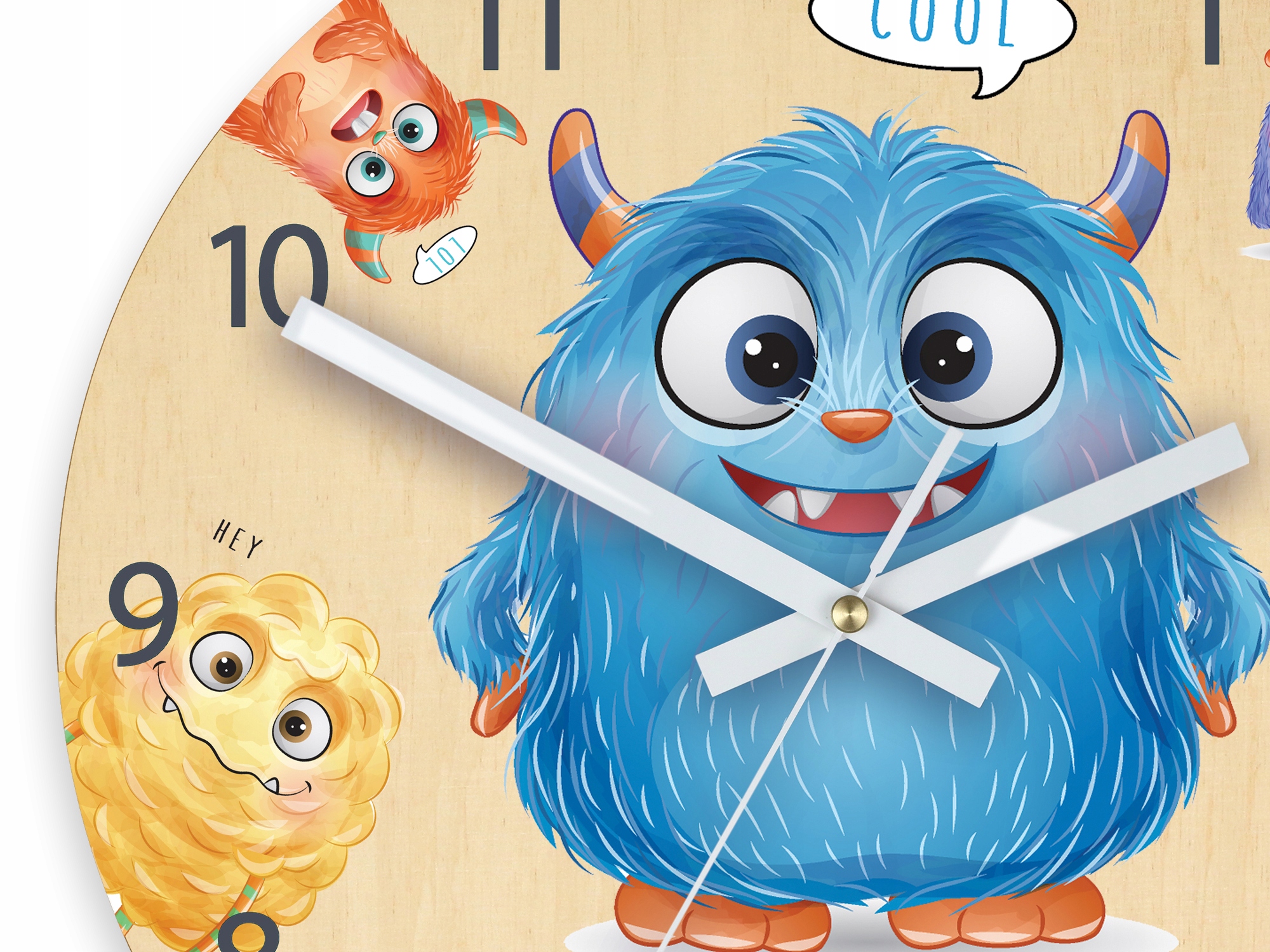Часы детской комнаты с мотивом монстра. Натуральный диск с часами из березовой фанеры с красивой разноцветной графикой и чистым часовым экраном является гарантией хорошего юмора вашего ребенка. Часы рекомендуются для меньших и больших детей. Интересная идея для подарка на день рождения. p>